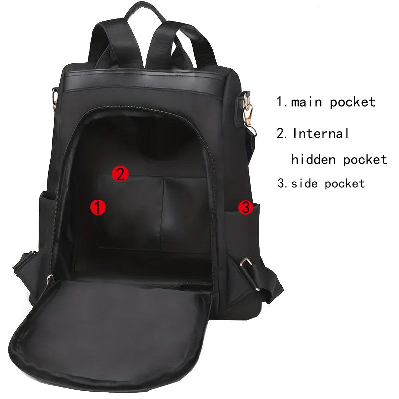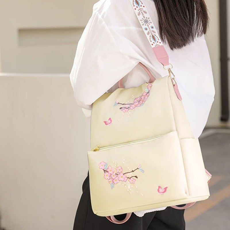 Neutral style backpack for men and women, suitable for daily travel and outings. Features a rear zipper with printed design.