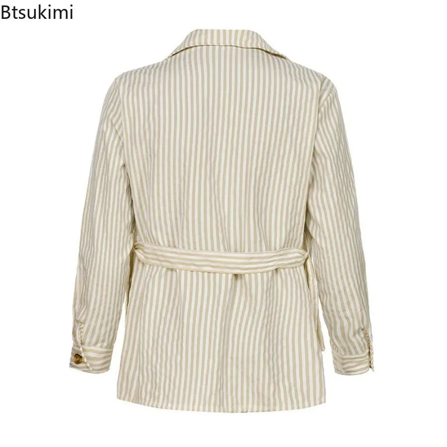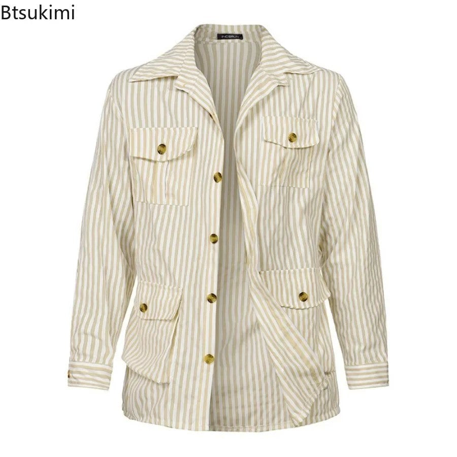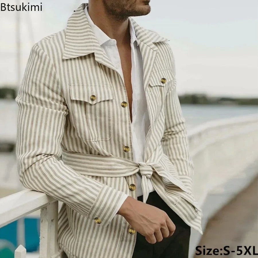 New 2025 Spring Autumn Men's Clothing Trend Striped Multi-pocket Men Cardigan Suit Jackets Business Casual Lace-up Coats for Men