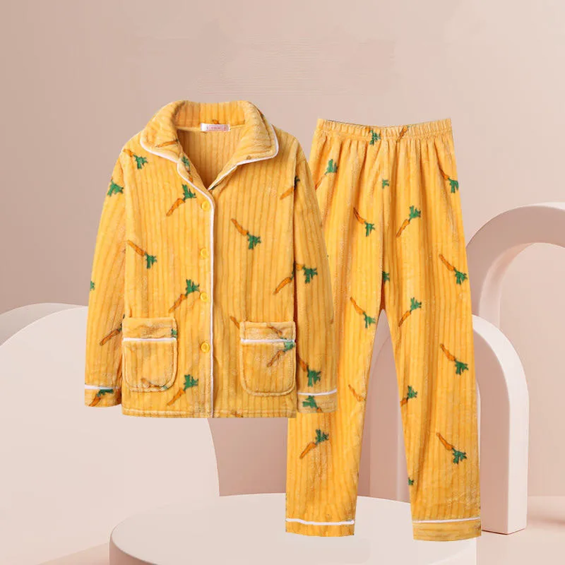 New 2025 Women's Coral Velvet Keep Warm Pajama Sets Autumn and Winter Thickened Fleece Warm Flannel Household Clothes for Women