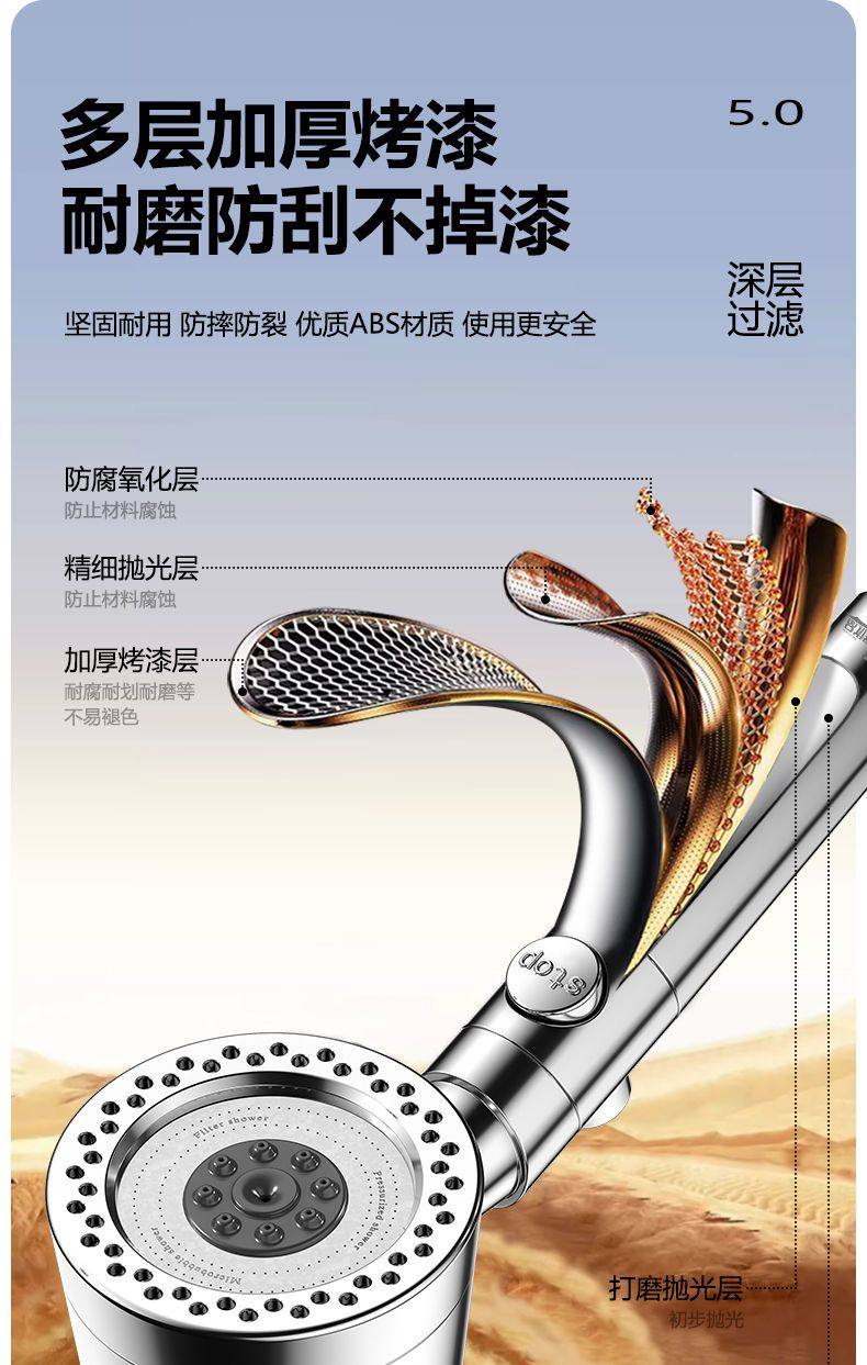 New 5 Modes High Pressure Shower Head Water Saving Large Flow Portable Shower Filter Showers Sprayer Set Bathroom Accessories