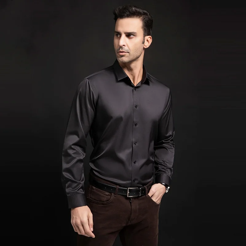 New Anti-Wrinkle Men Shirts Long Sleeve Dress Shirts For Men Slim Fit Camisa Social Business Blouse White Office Shirt S-6XL
