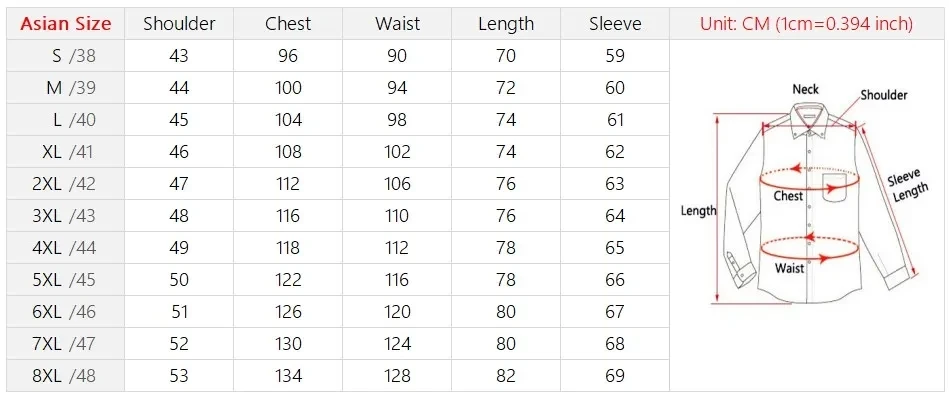 2) Normally, the shirt size should be bigger than your body size. you can check your usual shirt. if your body chest is 100cm, we suggest you choose shirt with 104cm or 108cm.