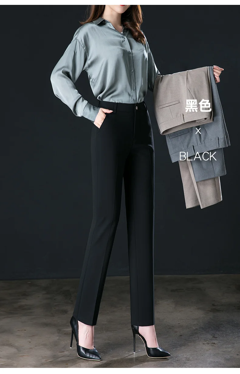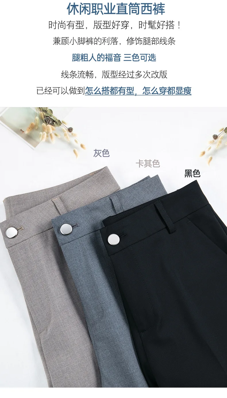 New Autumn Fashion Trousers Women's High Waisted Straight Suit Pants Loose Dress Pants Black Beige Grey Slacks Women Pantalones