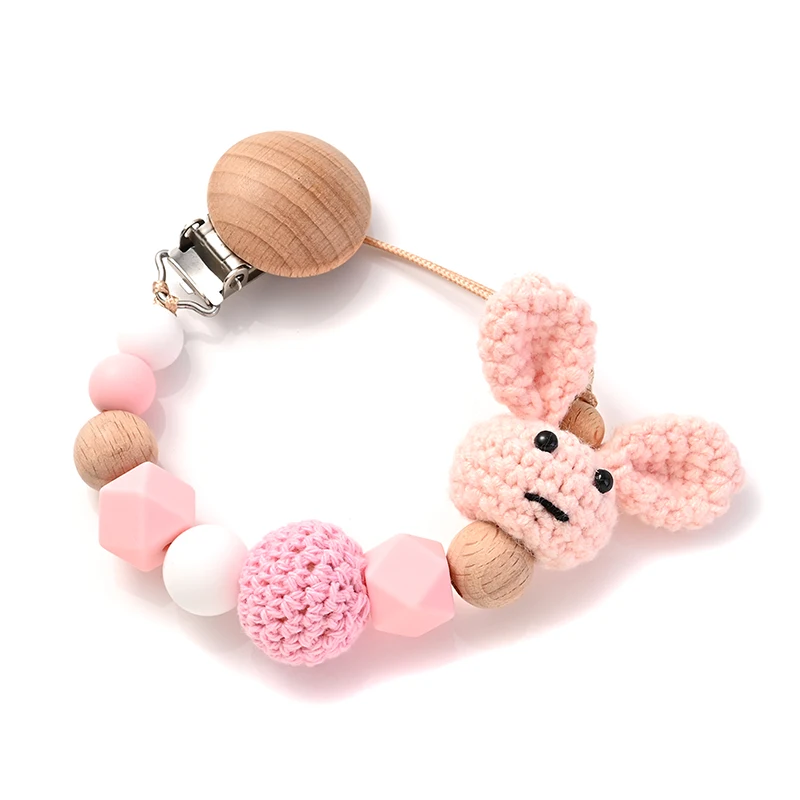 New Baby Wooden Pacifier Clip Wood Crochet Rabbit Teething Soother Chain For Nursing Chew Toy Baby Dummy Holder Chain BPA Free