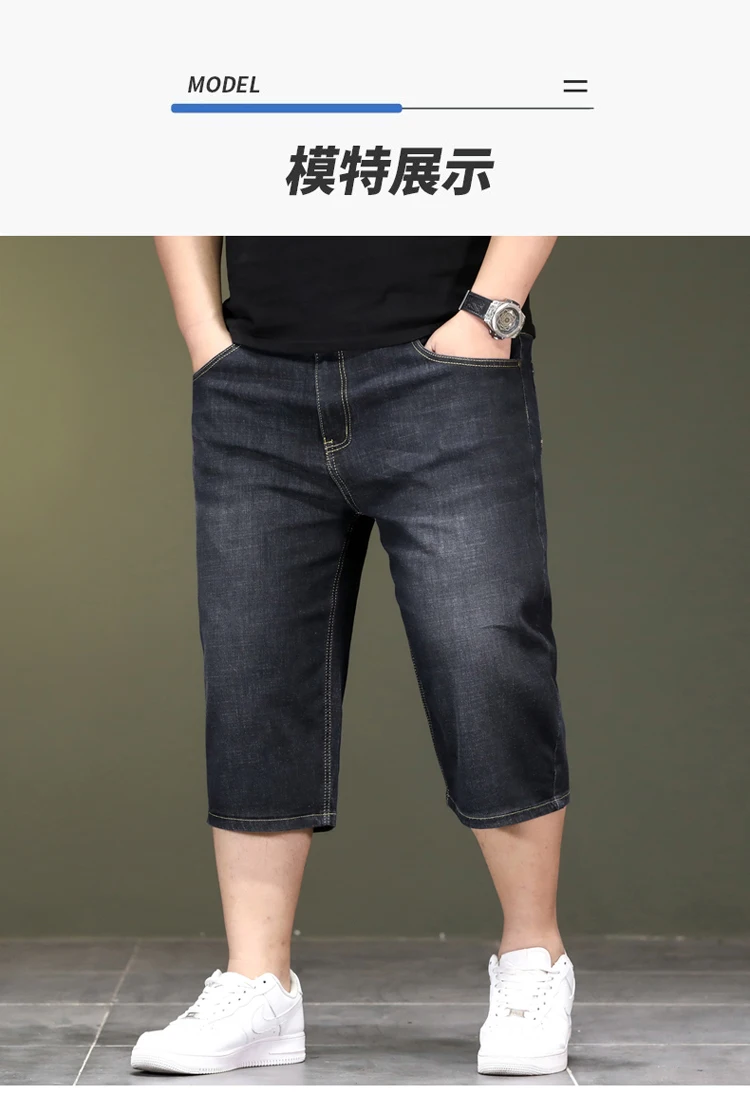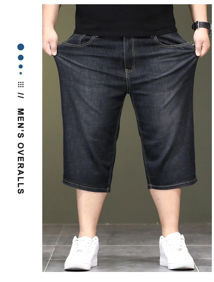 New Big Size Long Length Men's Shorts Loose Stretch Jean Bermuda Male Thin 3/4 Capris Summer Light Large Plus Fat Denim Breeches