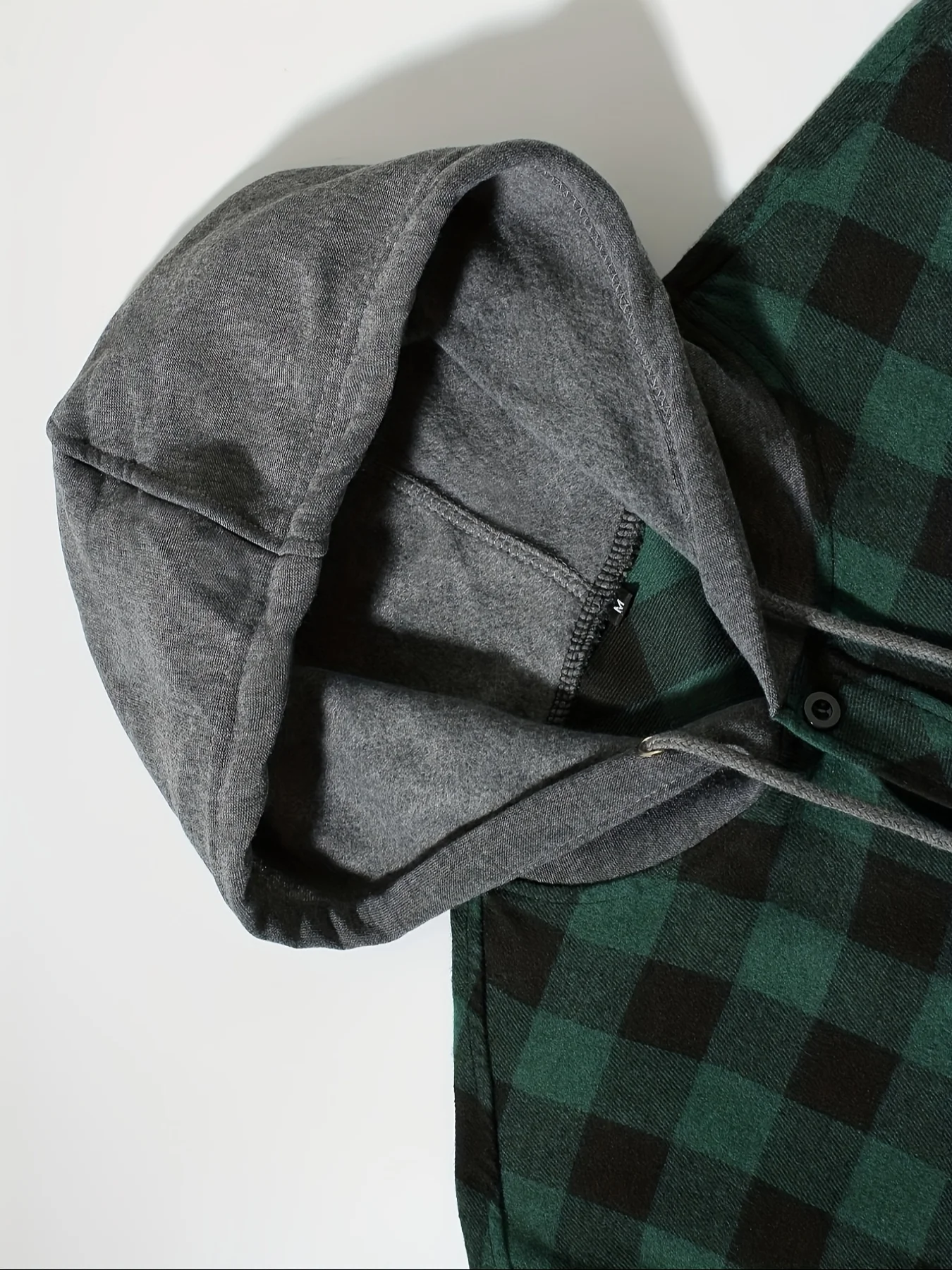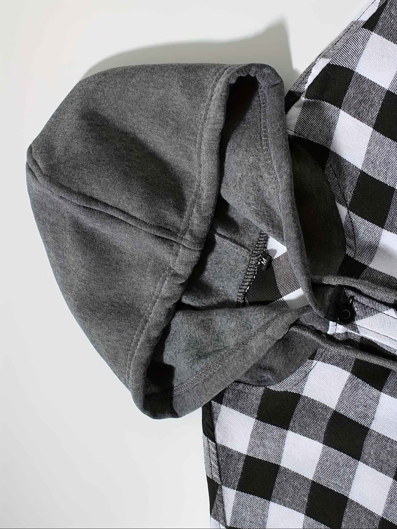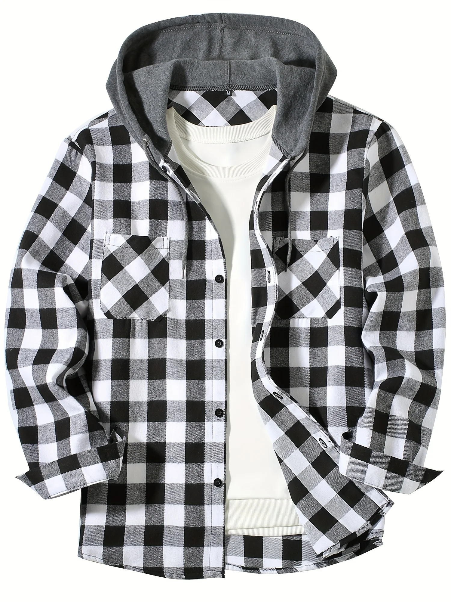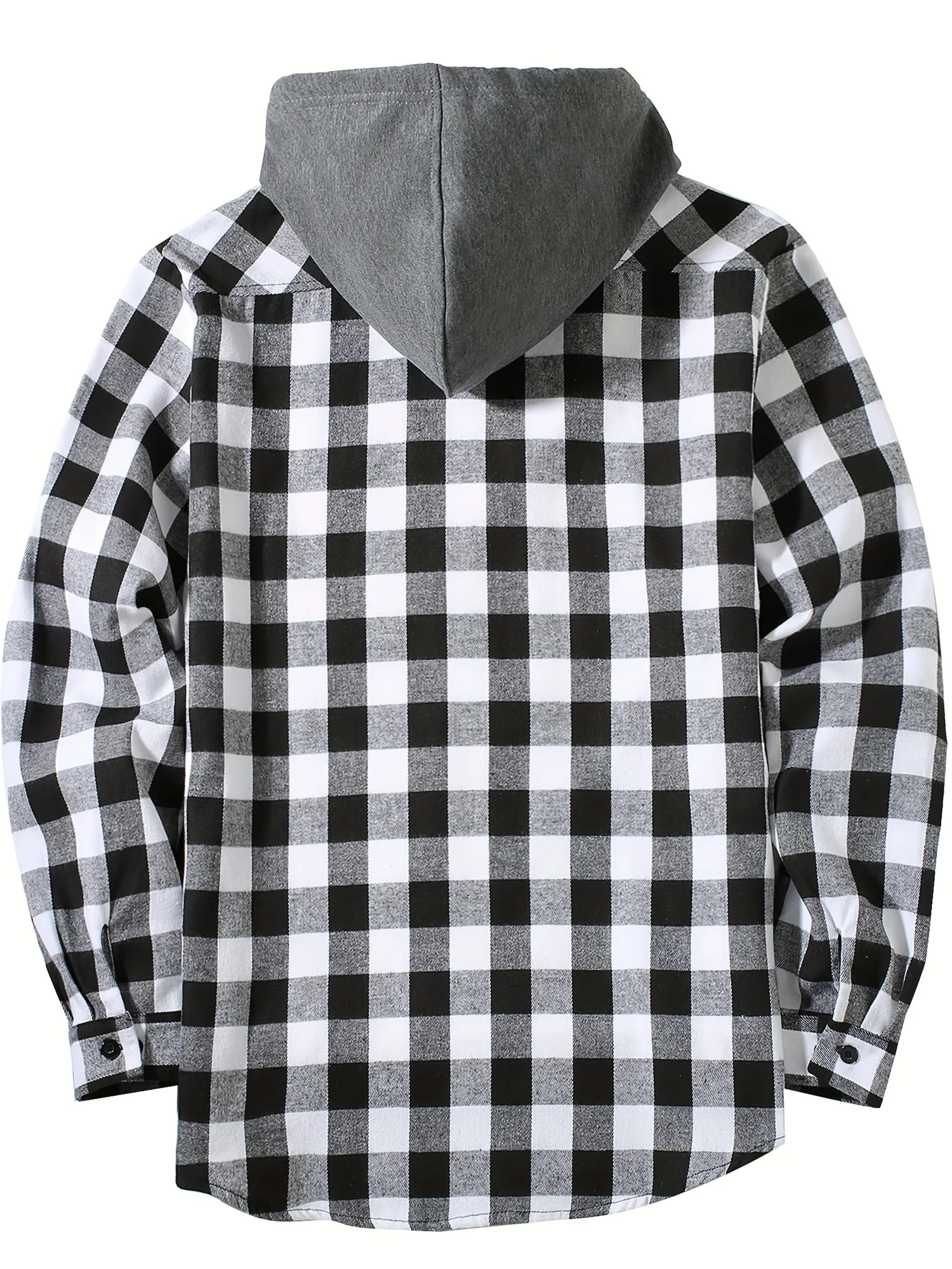 New Coat Spring and Autumn Men's Loose Plaid Hooded Shirt Large Size Fashion Casual Long sleeved Shirt Street StyleS-3XL