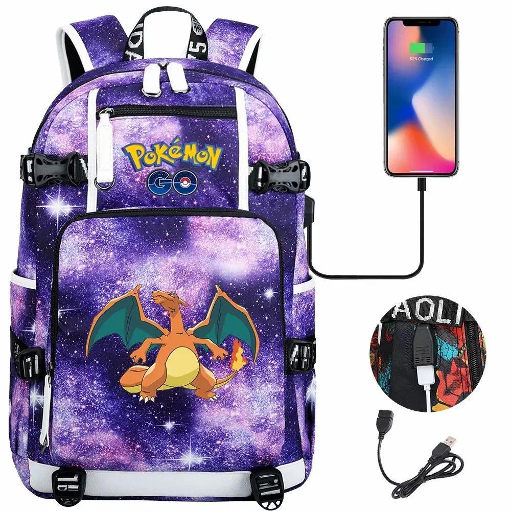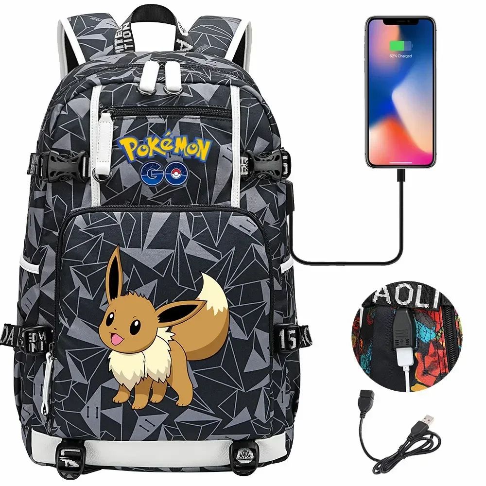 New Eevee Charizard USB Teenagers Schoolbags Women Men Laptop Travel Backpack Girl Boys Kids School Book Bags