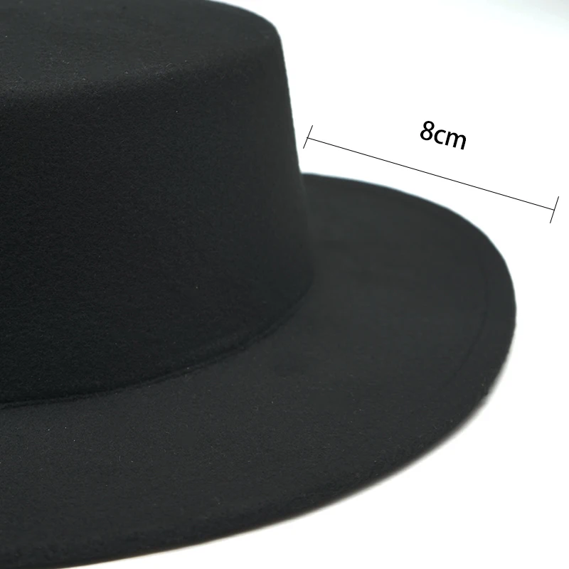 New Fashion 8CM Big side adult Vintage Wide Brim Felt Bowler Hats Floppy Cloche Fedora Cap Hat Band Bowler Elegant female hat