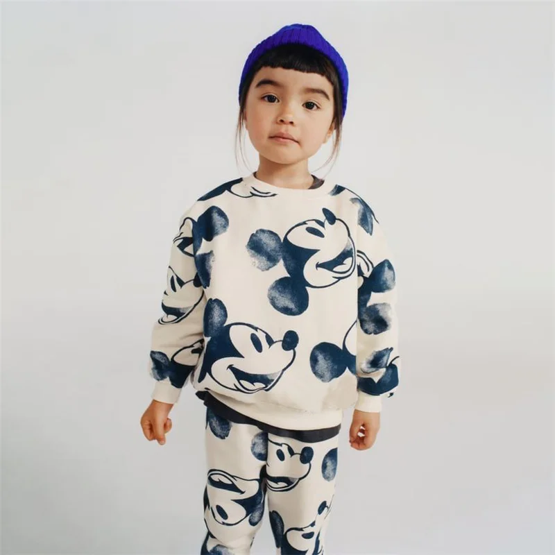 New Fashion Baby Clothes Sets Mickey Mouse Printed Long Sleeved Sweatshirt + Pant Toddler Boy Girl Outfits