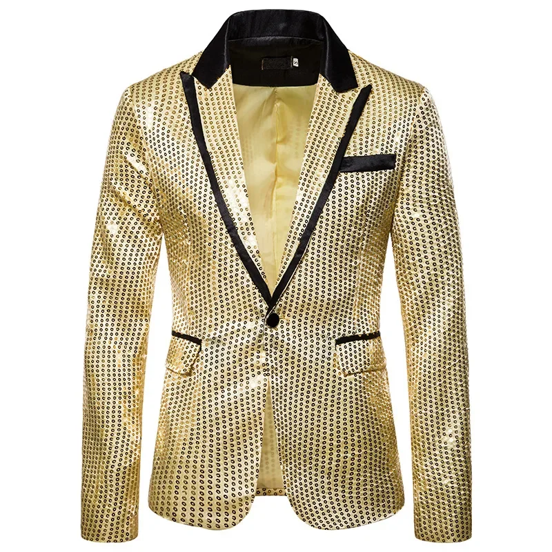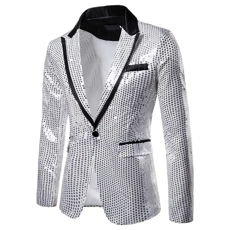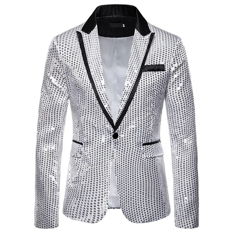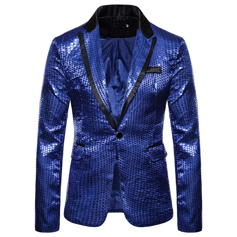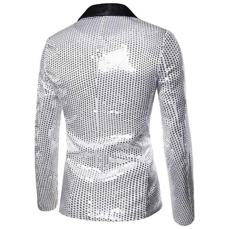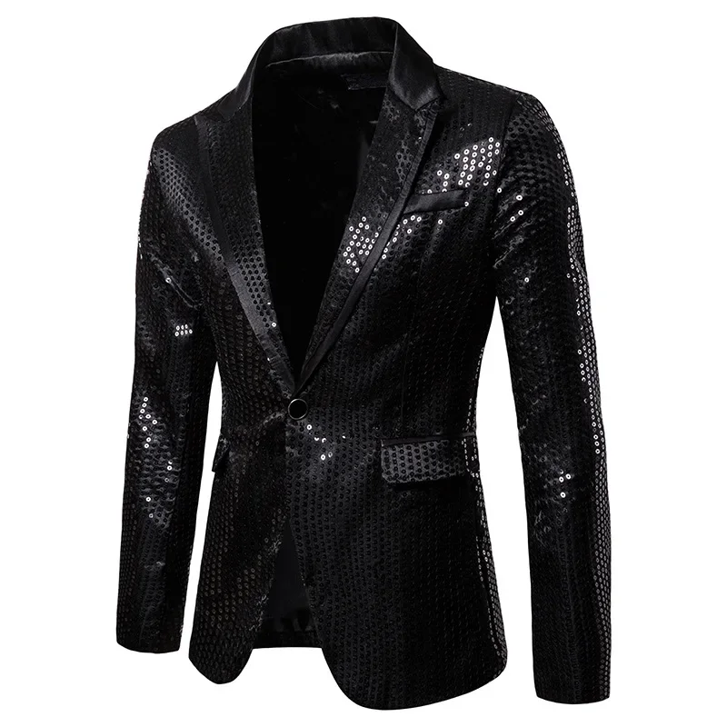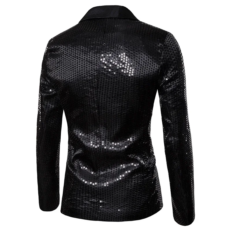 New Fashion Black Sequin Mens Shiny Suit Jacket One Button Blazer For Male Nightclub Singers Stage Dress Blazers Chaqueta Hombre