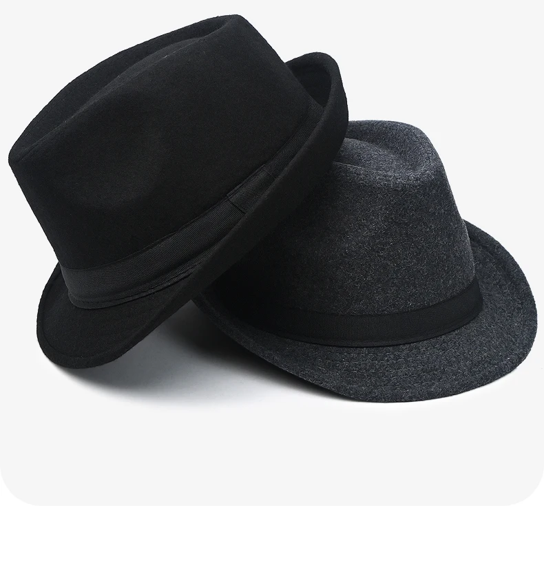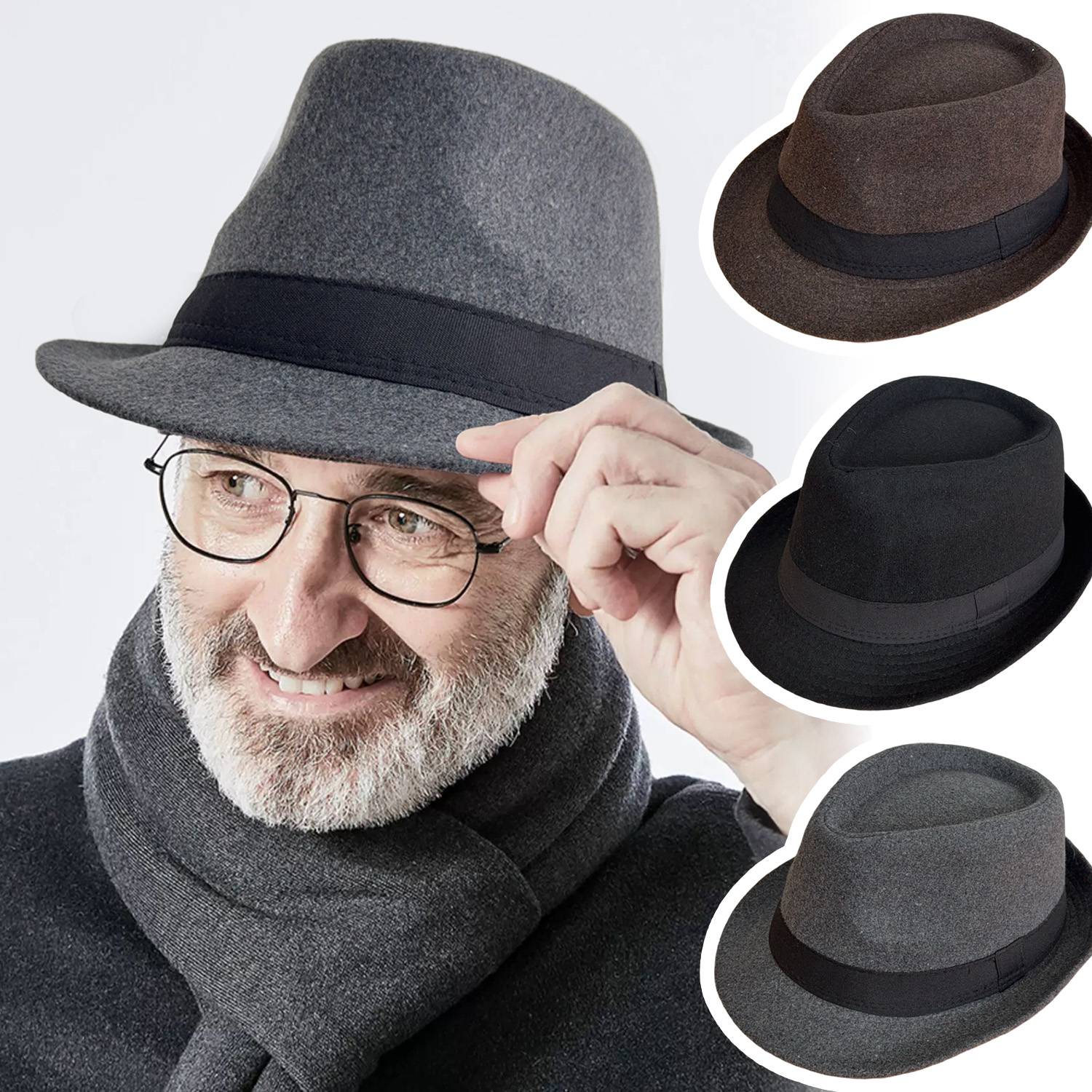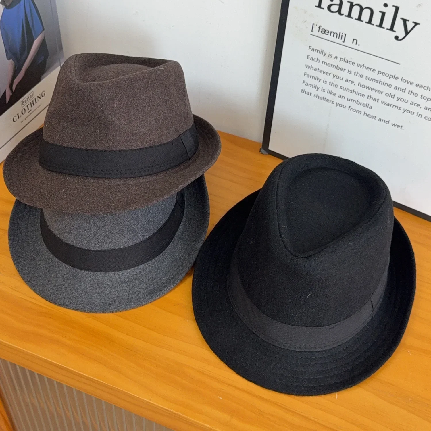 New Fashion Casual Topper for Men British Fashion Black Jazz Hat Wool Versatile Middle-aged Elderly Hat Elegent Trend Fedoras