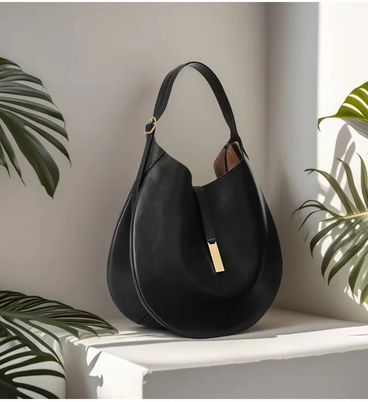 New Fashionable Women's Underarm Bag, Leather Riding Style Brown/Black Crossbody Bag Crescent Bag Travel Bag
