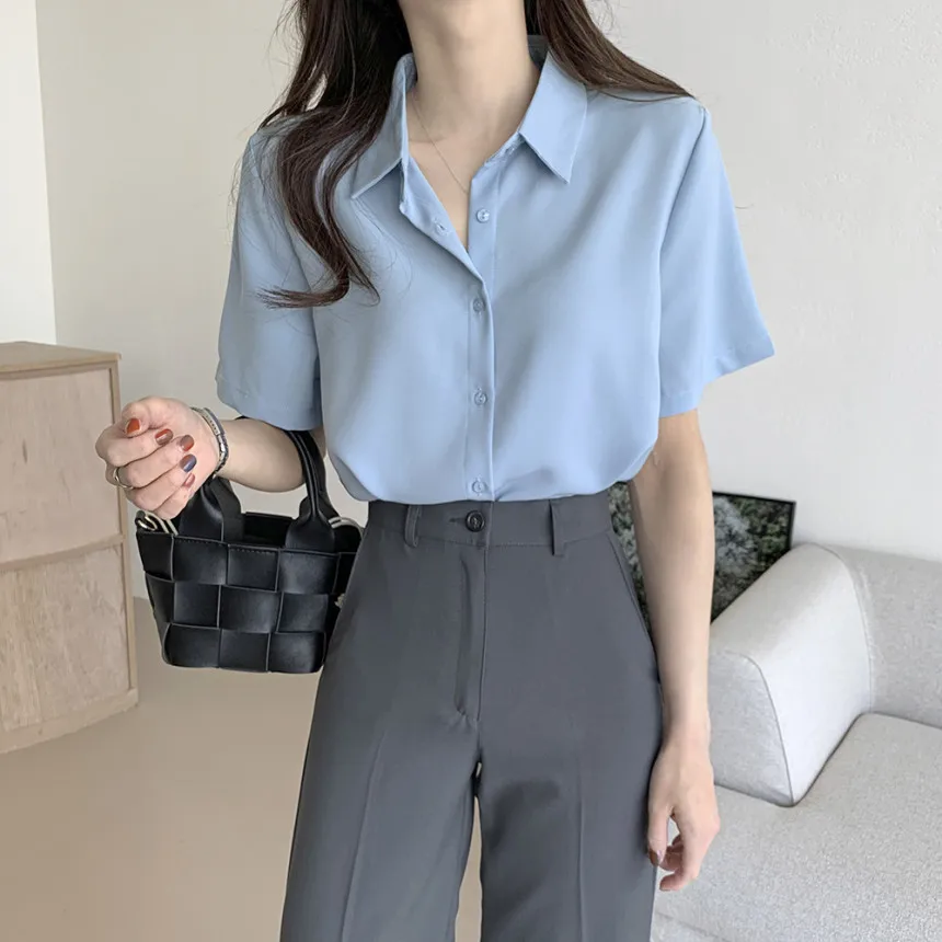 New French High-end Chiffon Simple Dressing Short-sleeved Shirt Top for Women