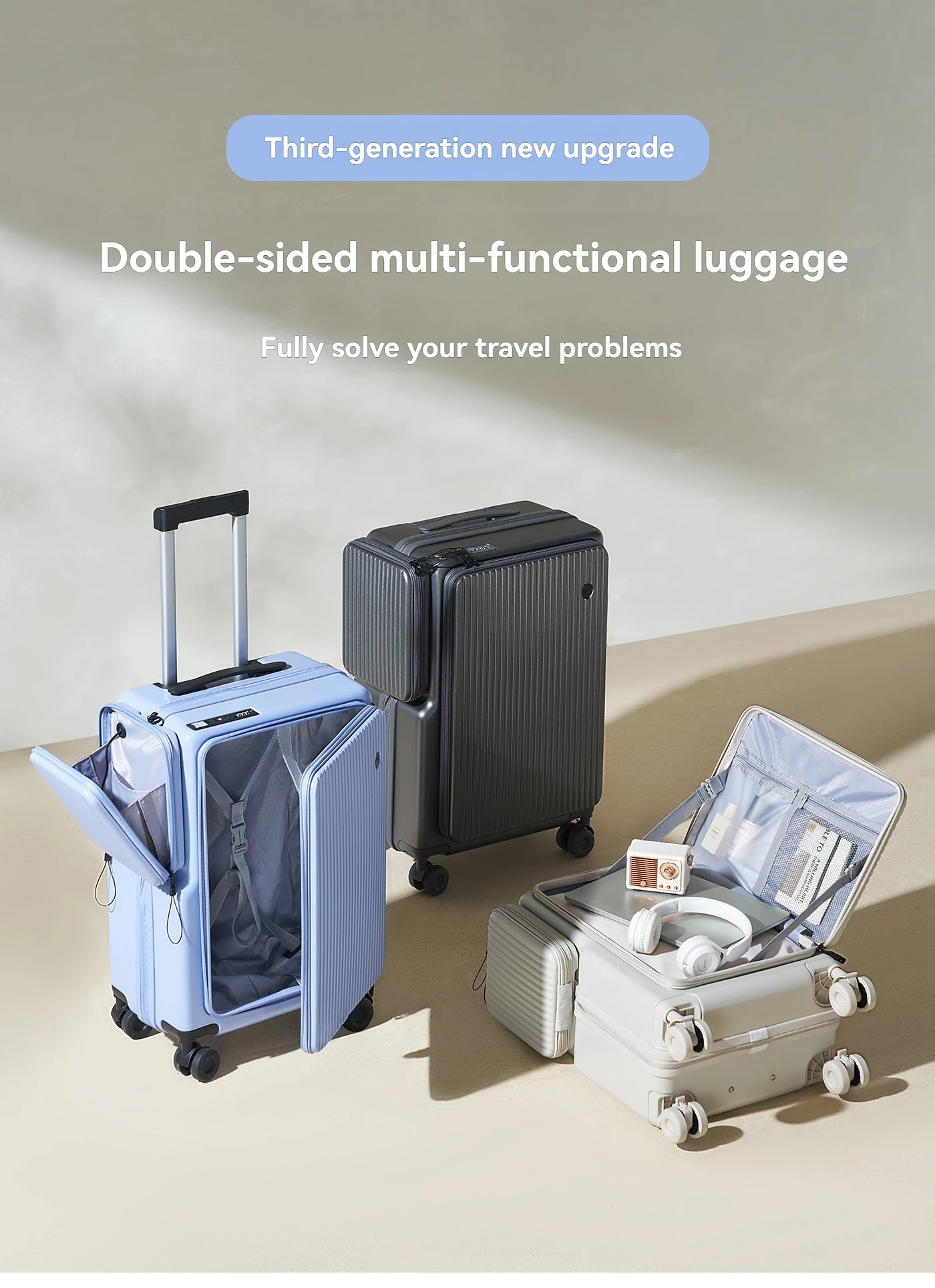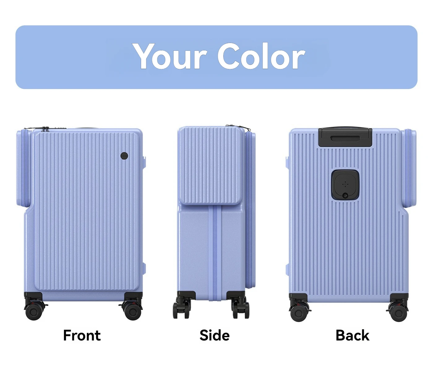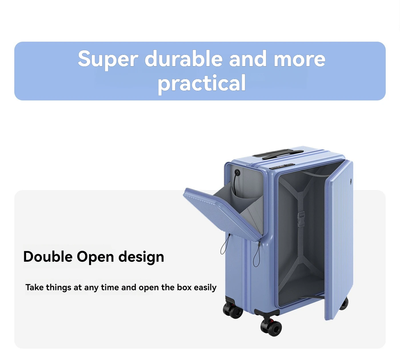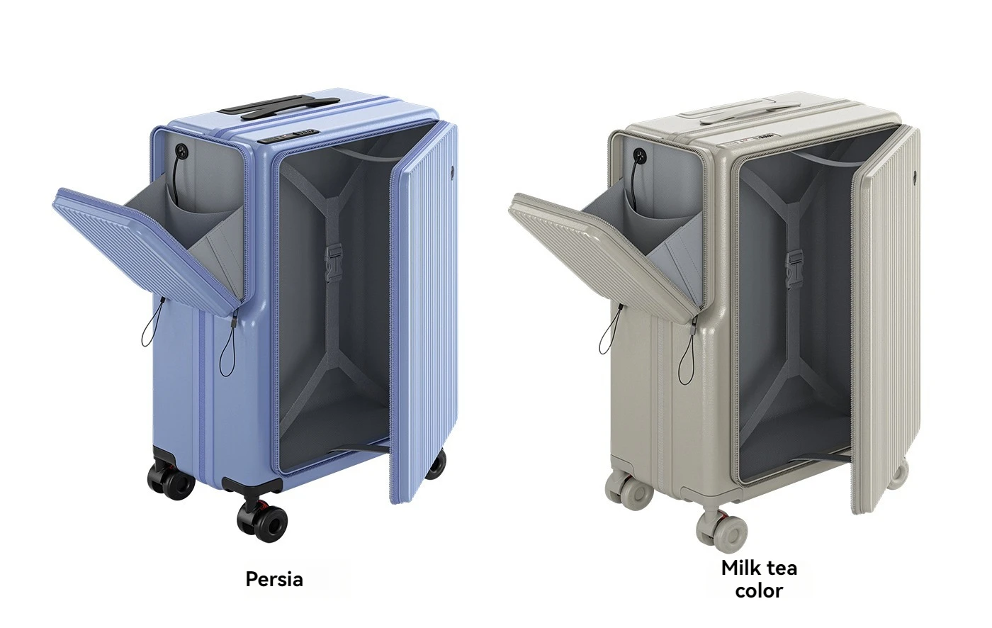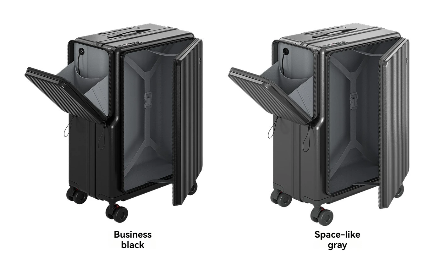 New Front-Opening Luggage with Large Capacity, Expandable, Cup Holder, USB Charging, Telescopic Handle, and Universal Wheels