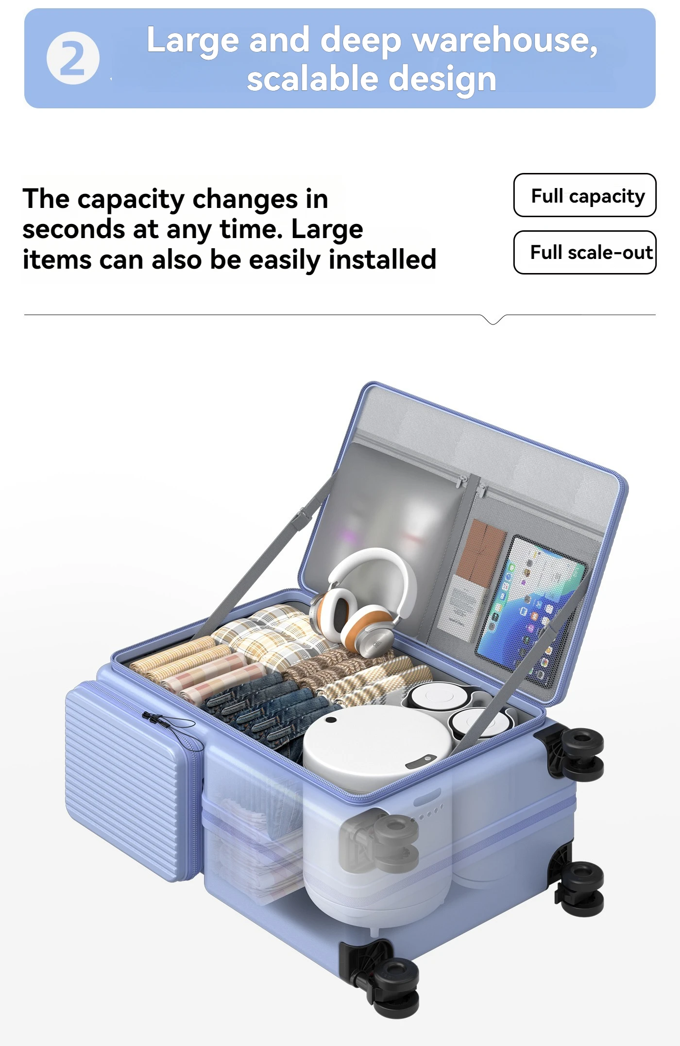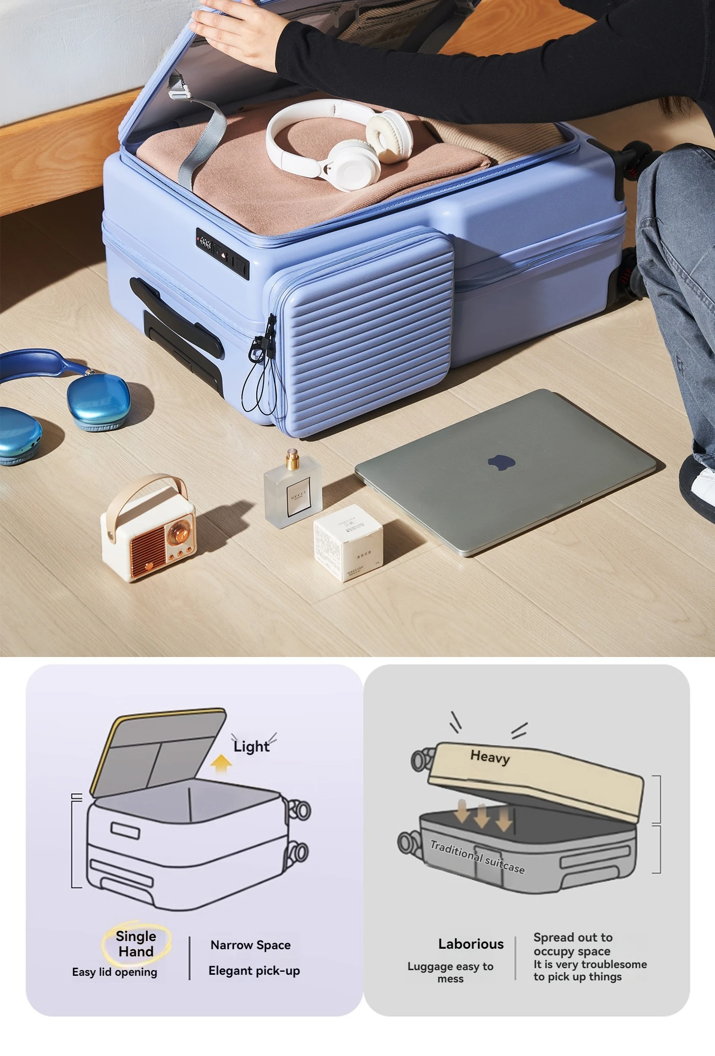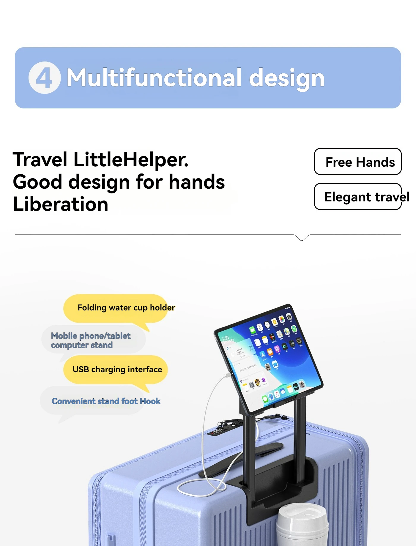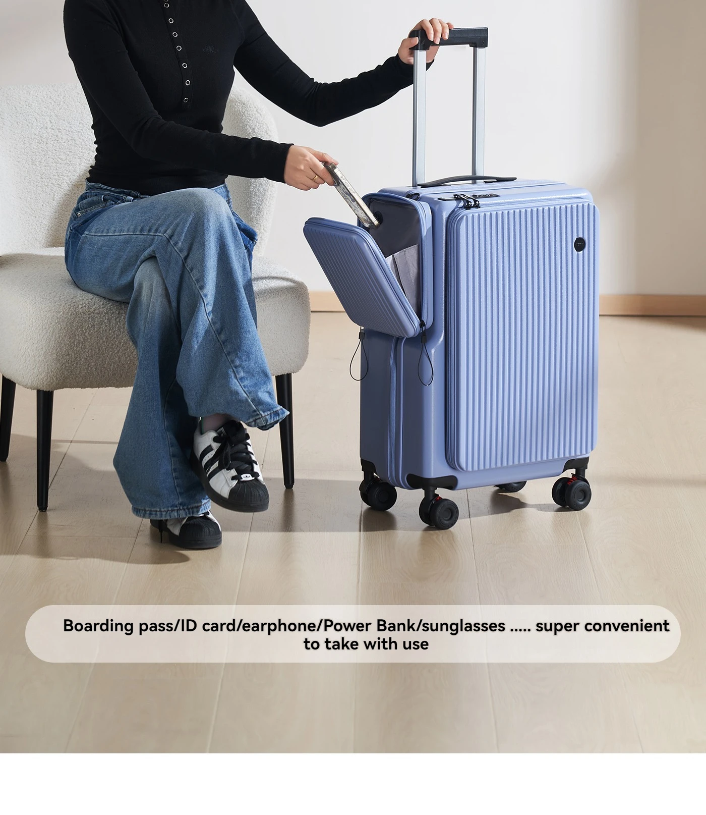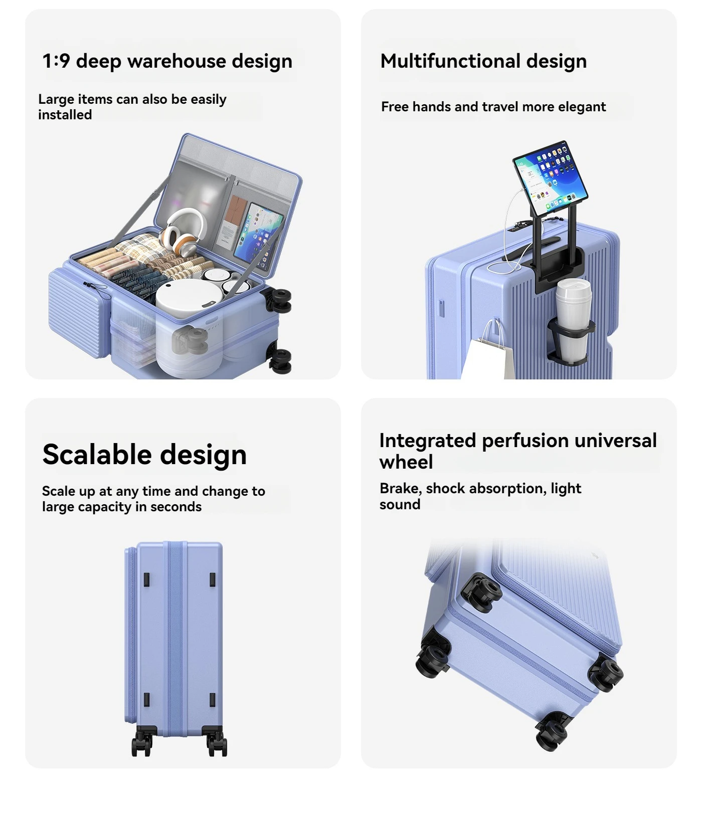 New Front-Opening Luggage with Large Capacity, Expandable, Cup Holder, USB Charging, Telescopic Handle, and Universal Wheels