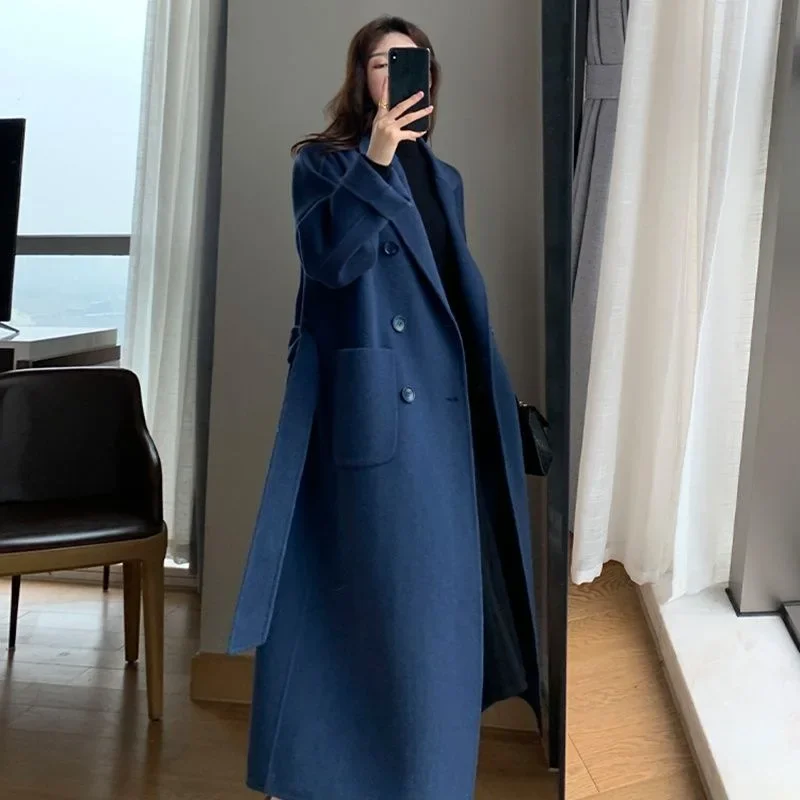 New Hot Sale Of The Season Women's Woolen Coat plus Size over Knee Length Loose Fit Slimming High End Fashionable Polyester Fibe