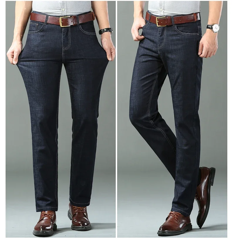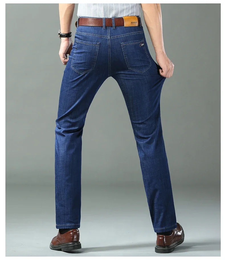 New Ice Silk Thin Denim Jeans For Men Blue Straight Stretch Cotton Pants Business Casual Lightweight Trousers Spring Summer