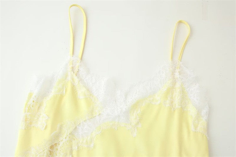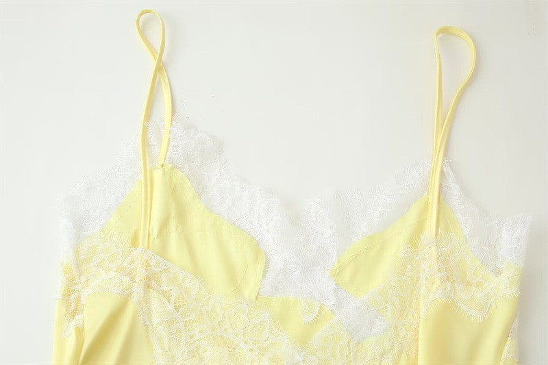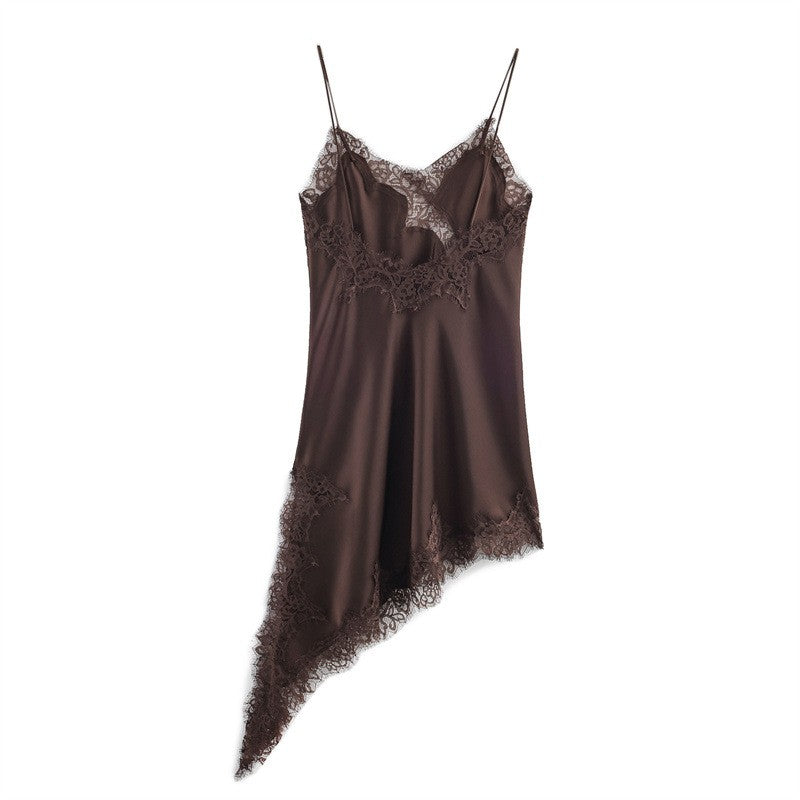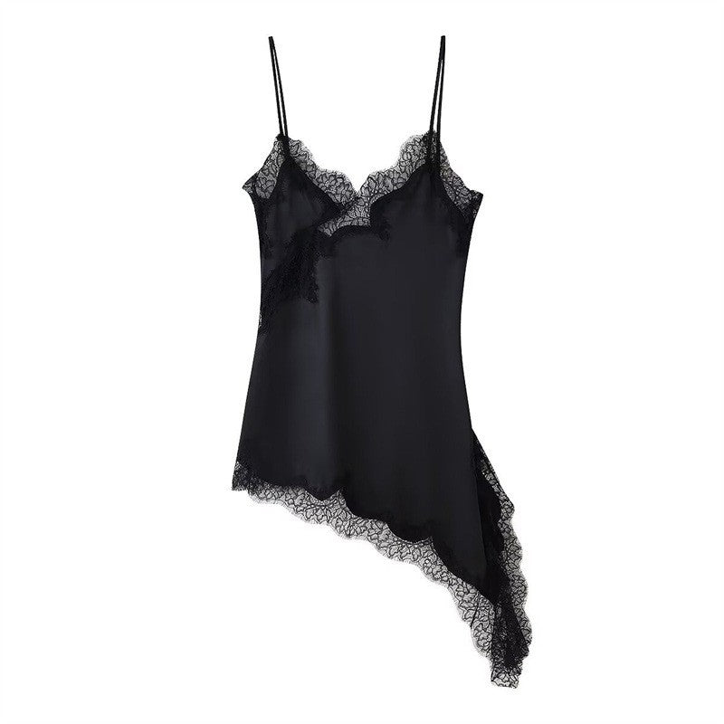 New Lace Mini Spaghetti Strap Dress For Women Irregular Backless Slit Sexy Evening Party Dress Female High Waist Bottom Dresses