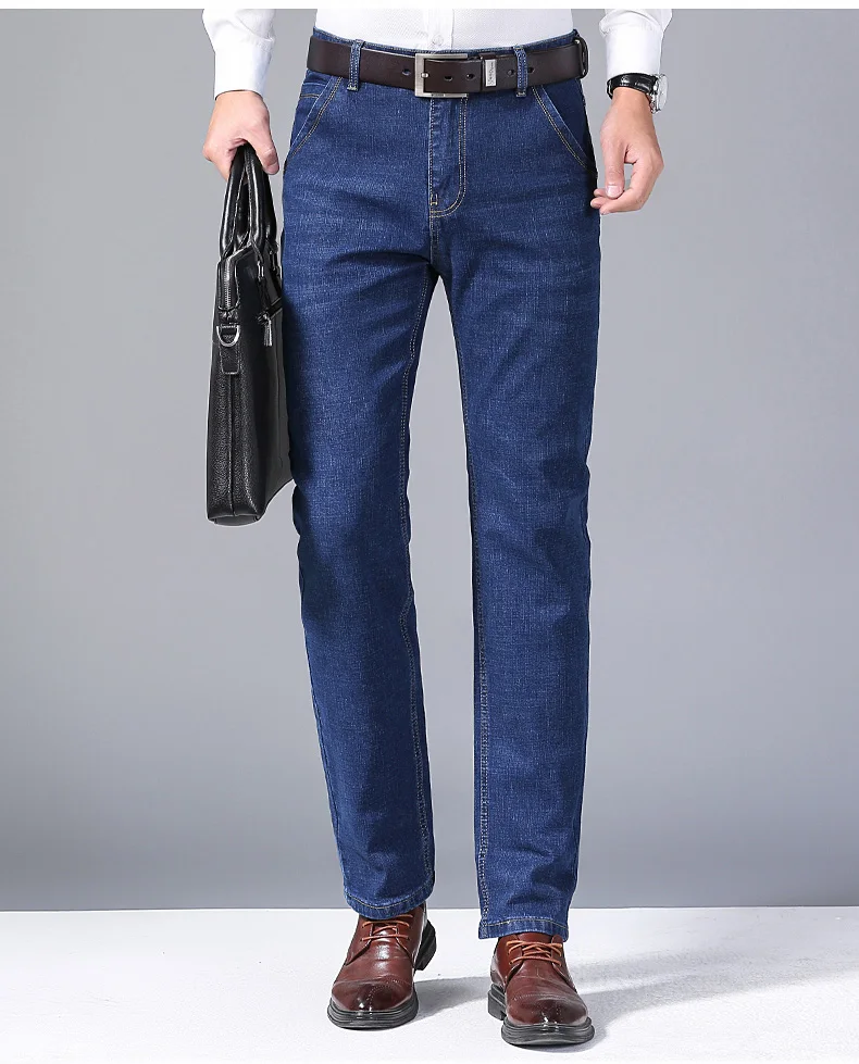 New Men Light Luxury Stretch Slim Fit Pants Comfortable Soft Business Fashion Straight Casual Denim Trousers Male Brand Clothing