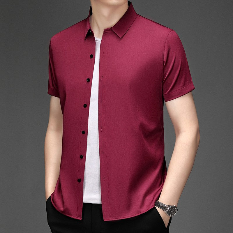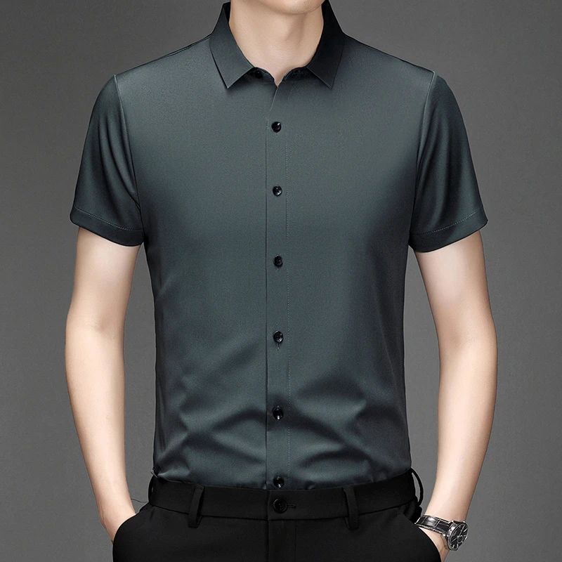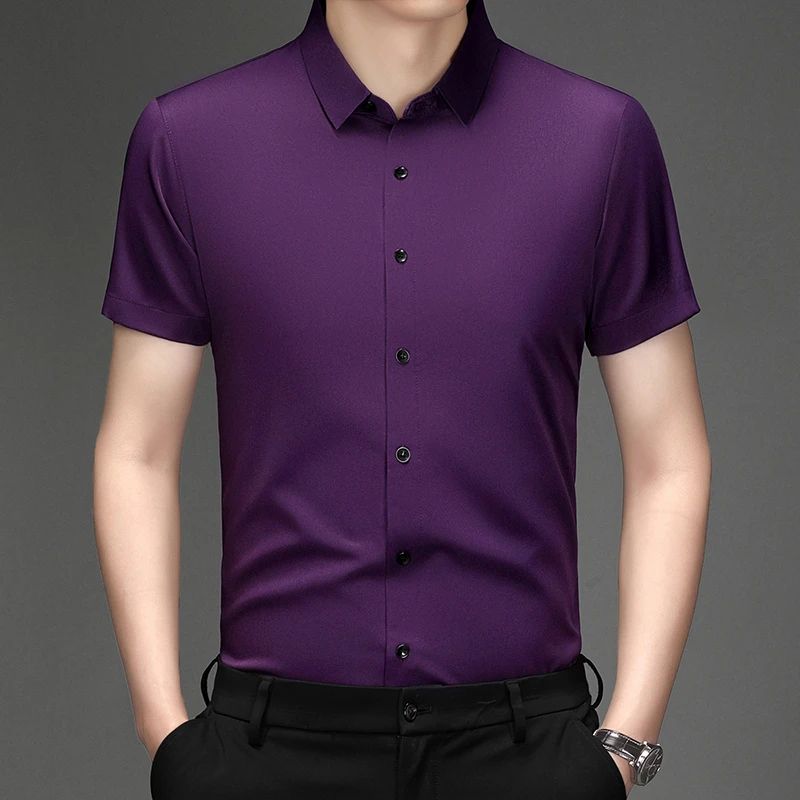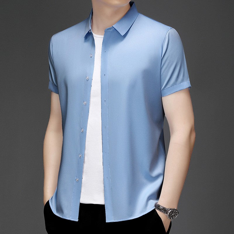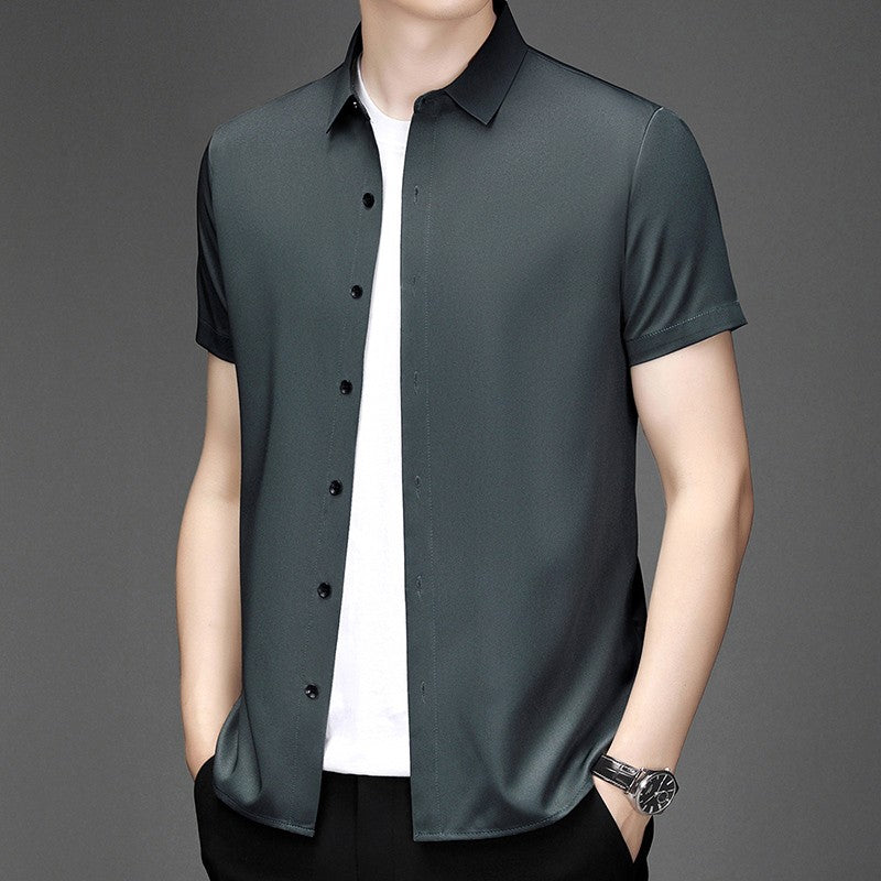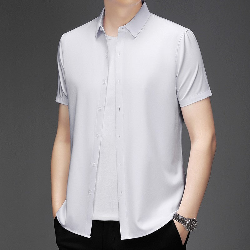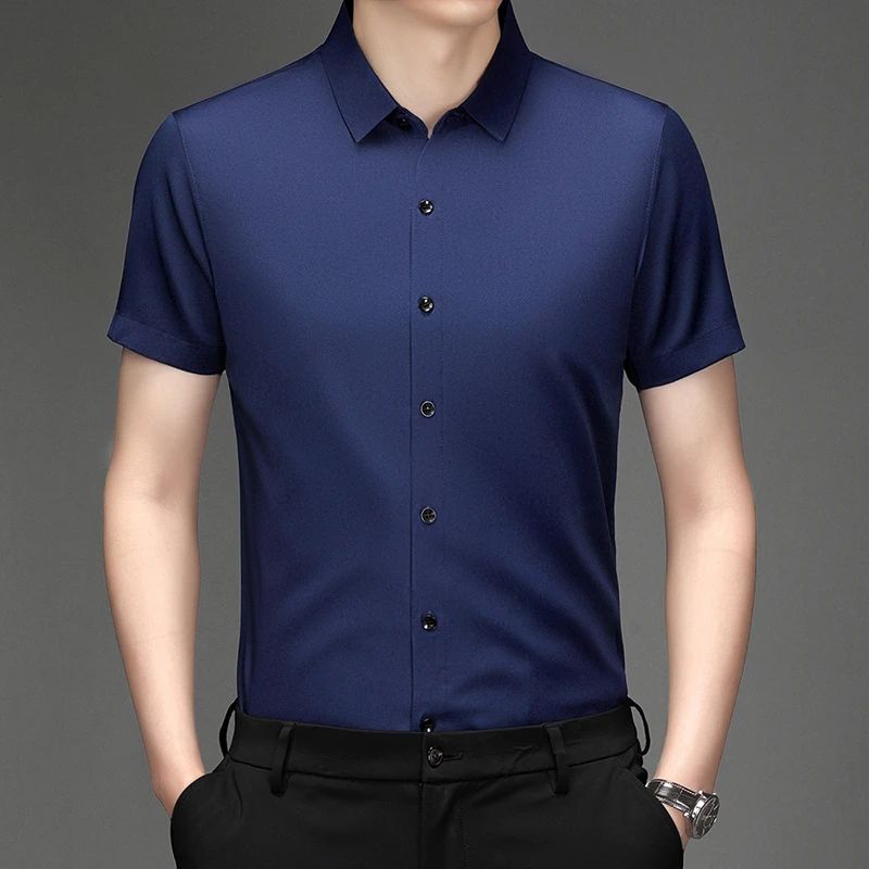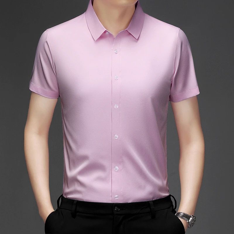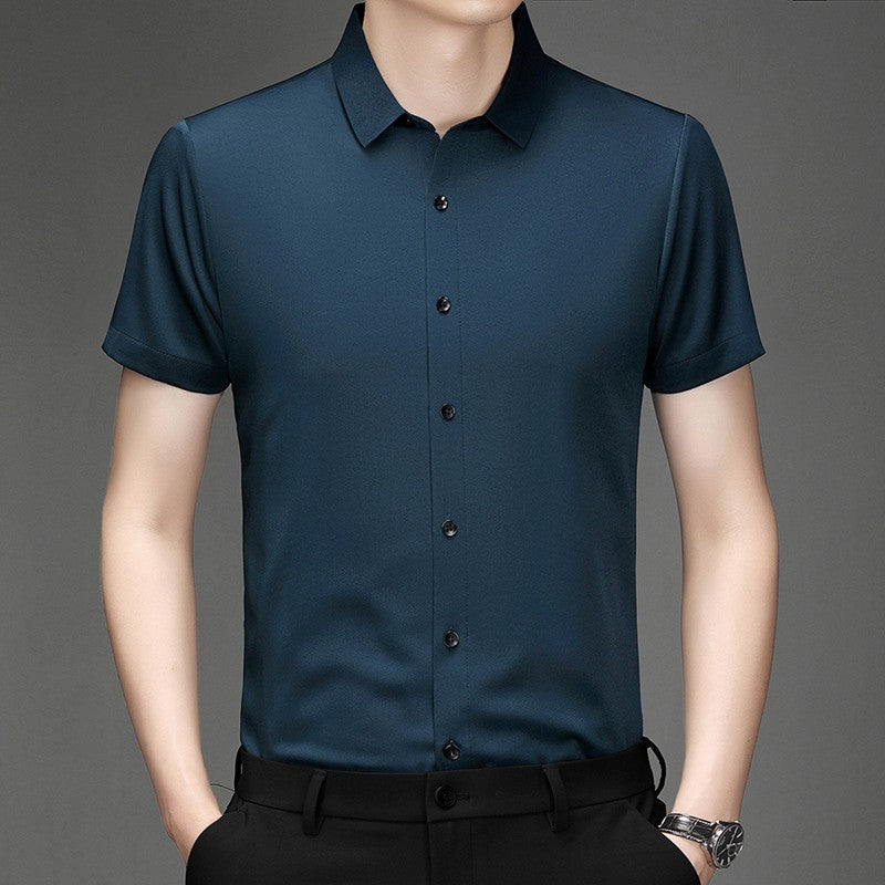 New Men's Business Casual Short Sleeved Solid Color Shirt Wrinkle Resistant Wrinkle Free Comfortable All Season Versatile Top