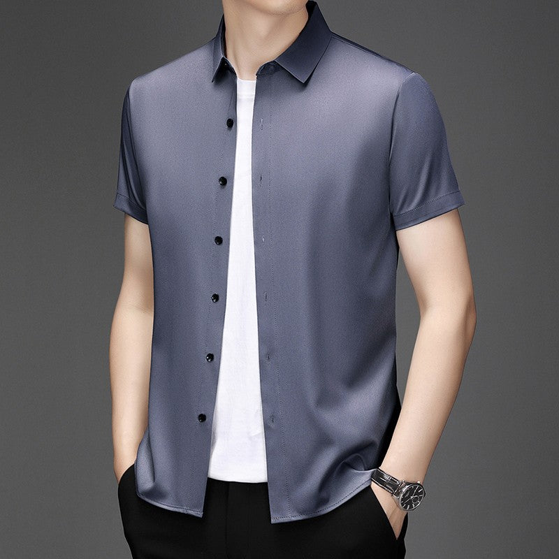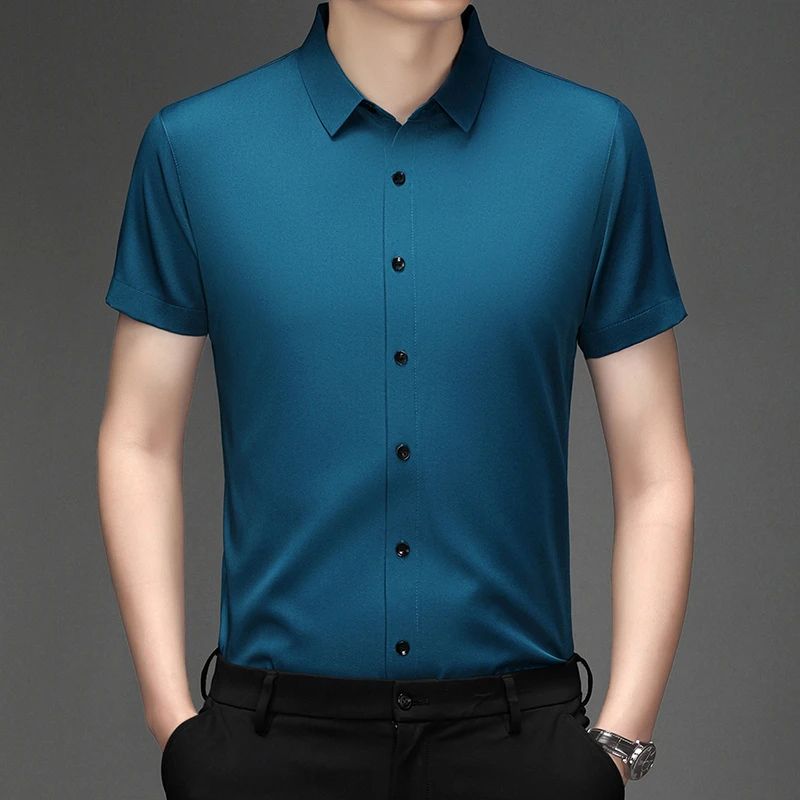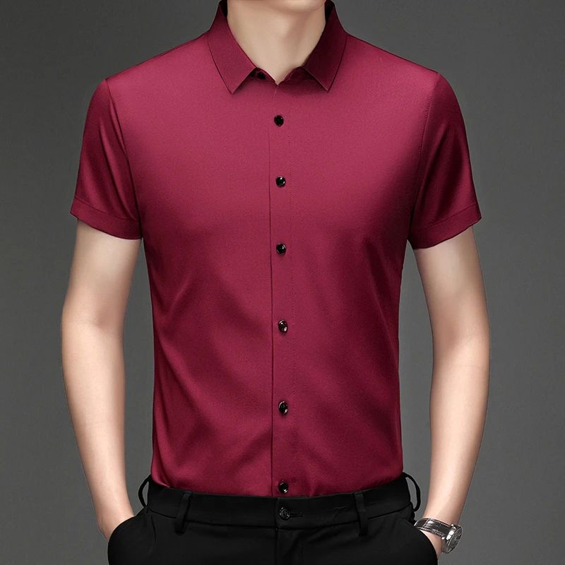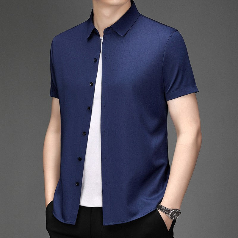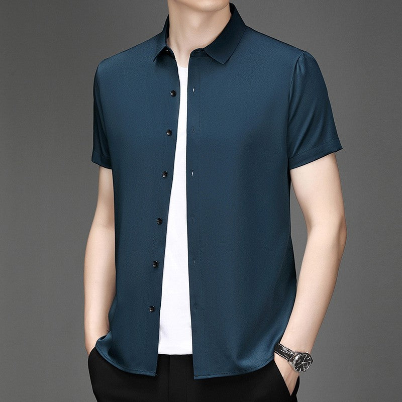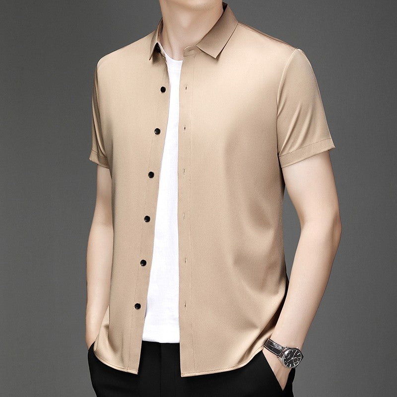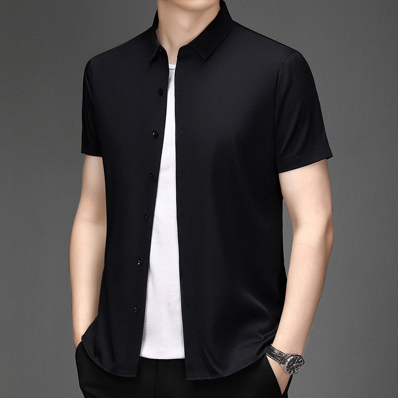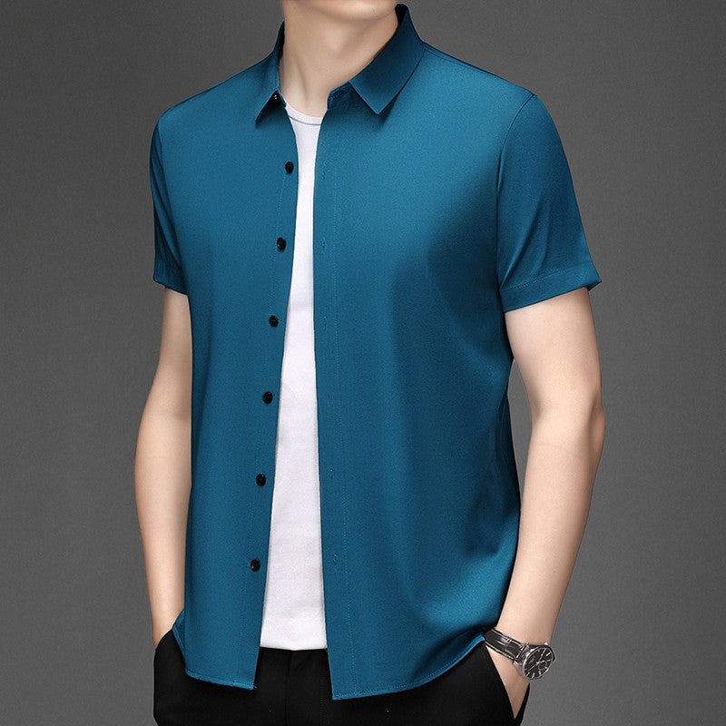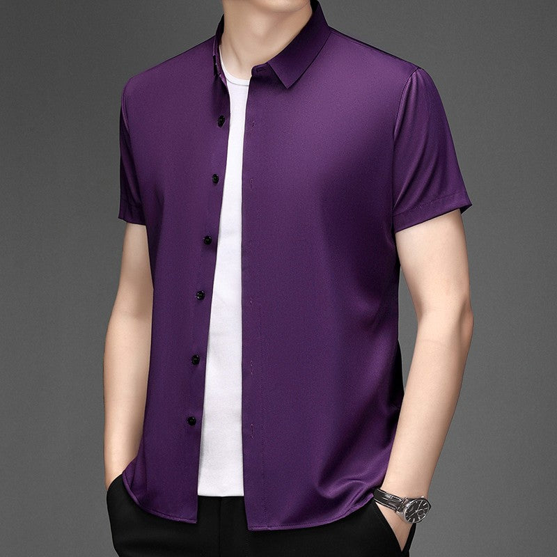 New Men's Business Casual Short Sleeved Solid Color Shirt Wrinkle Resistant Wrinkle Free Comfortable All Season Versatile Top