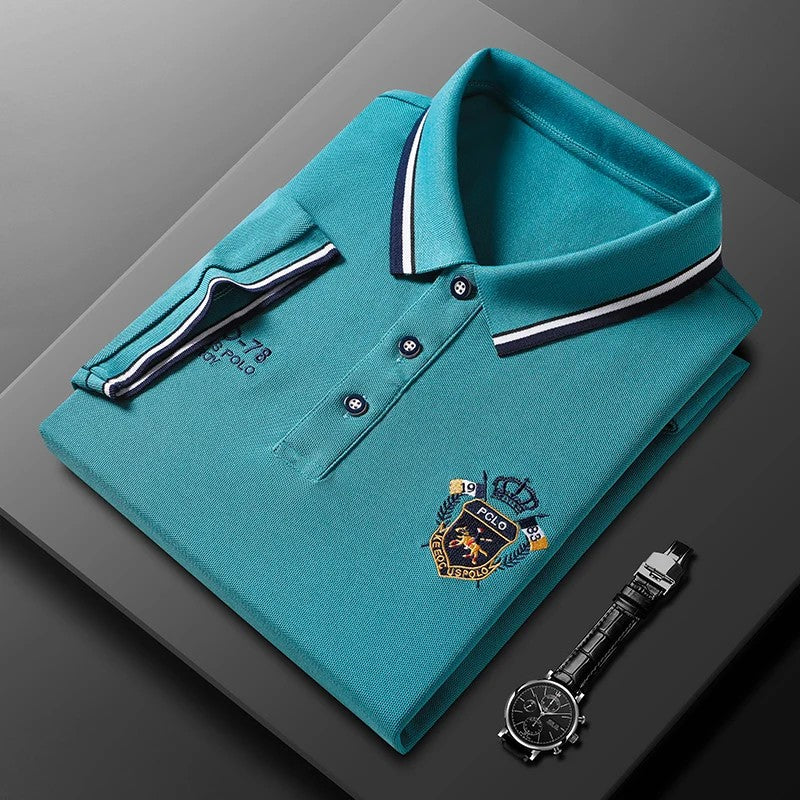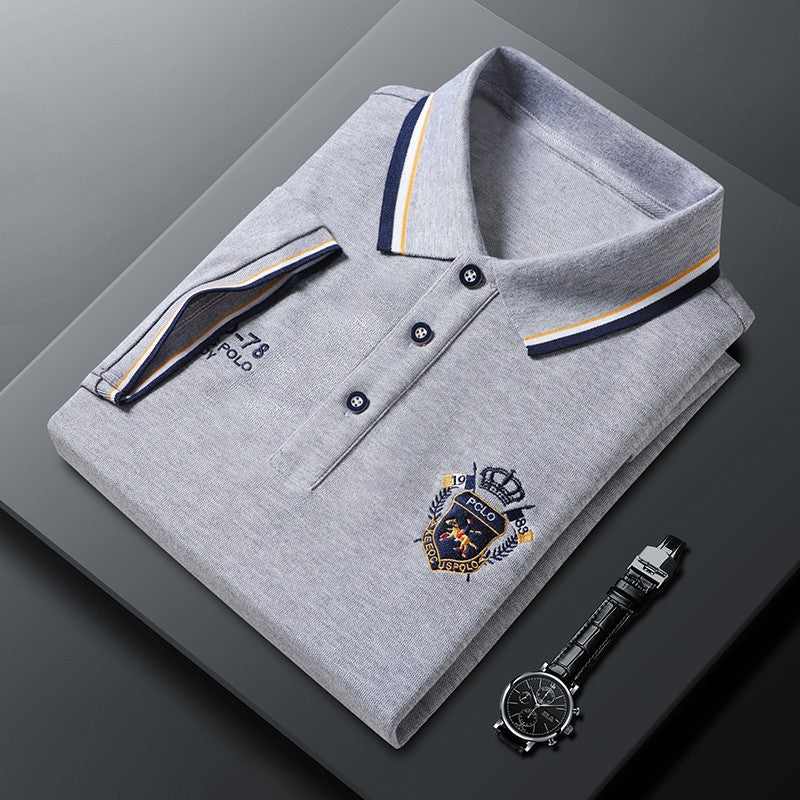 New Men's Casual Embroidery Short Sleeve Polo Shirt Fashion Solid Color Top
