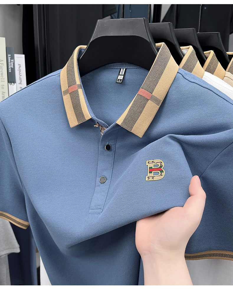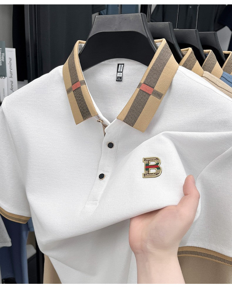 New men's fashionable short sleeved summer designer exquisite craftsmanship embroidery stand collar polo business casual T-shirt