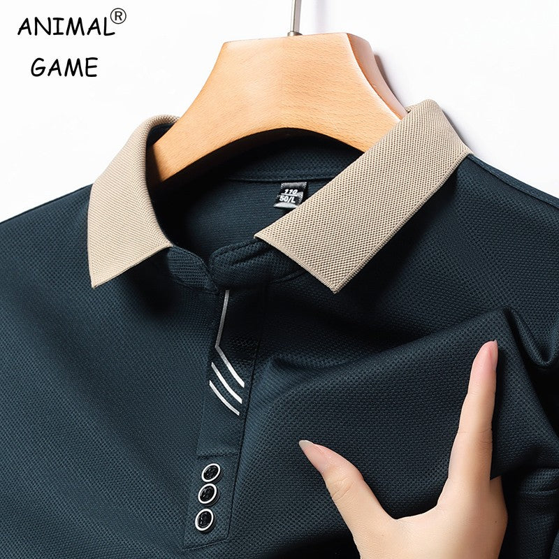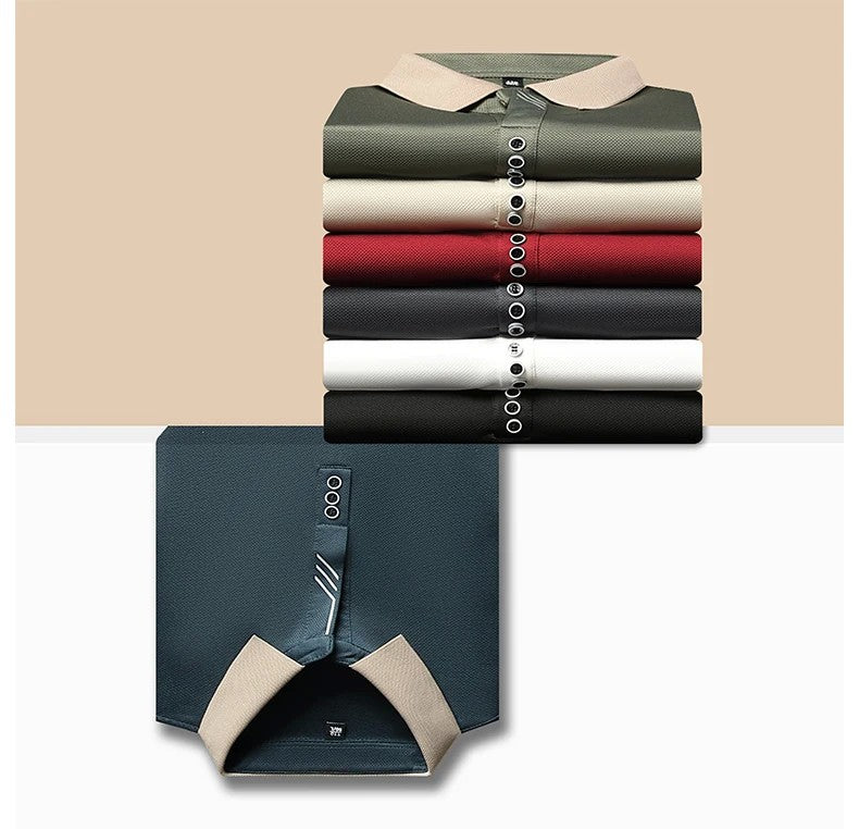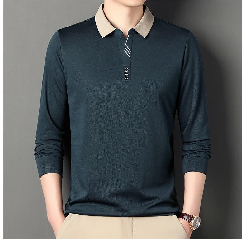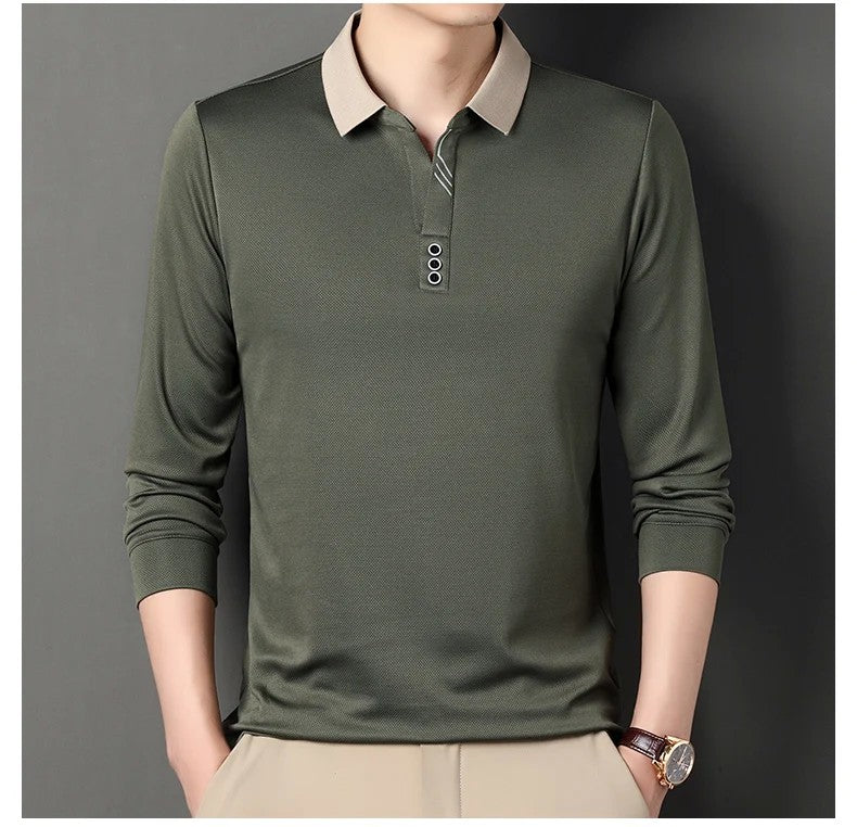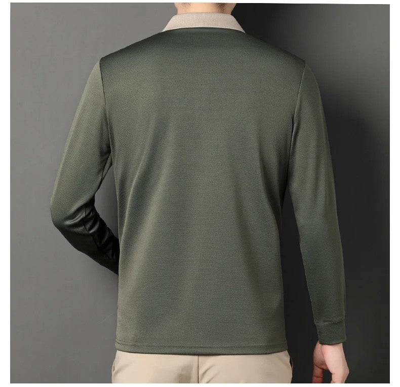 New Men's Long-sleeved Polo Shirt Sweatwear Business Casual Top Fashion Classic Solid Color Male Brand Basic V-neck Top