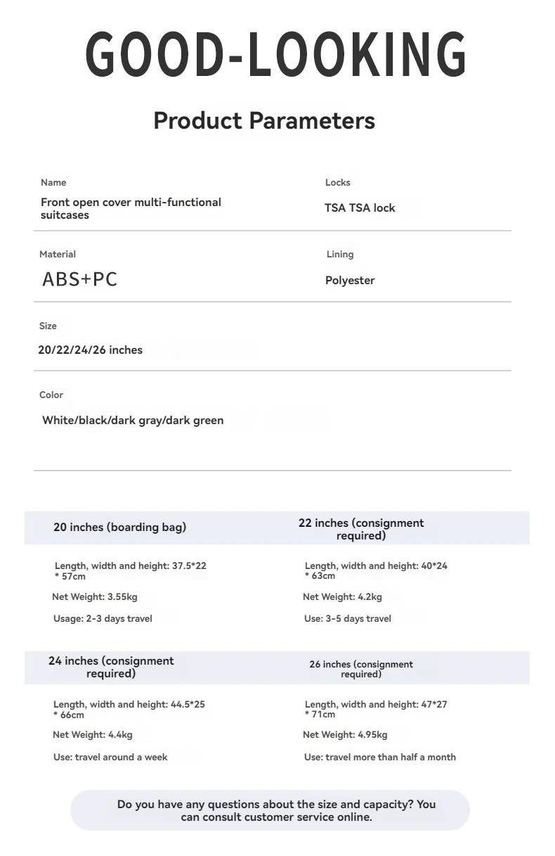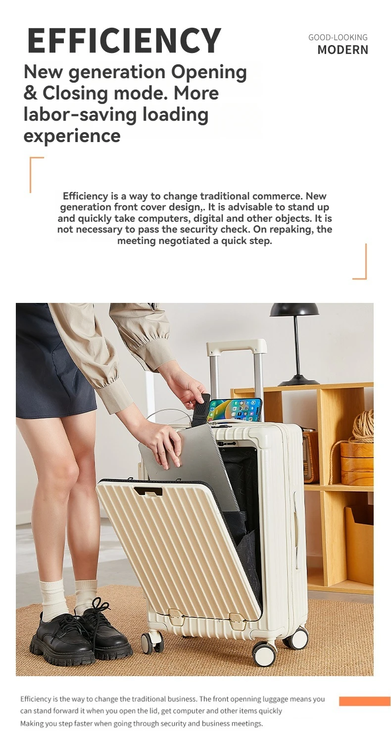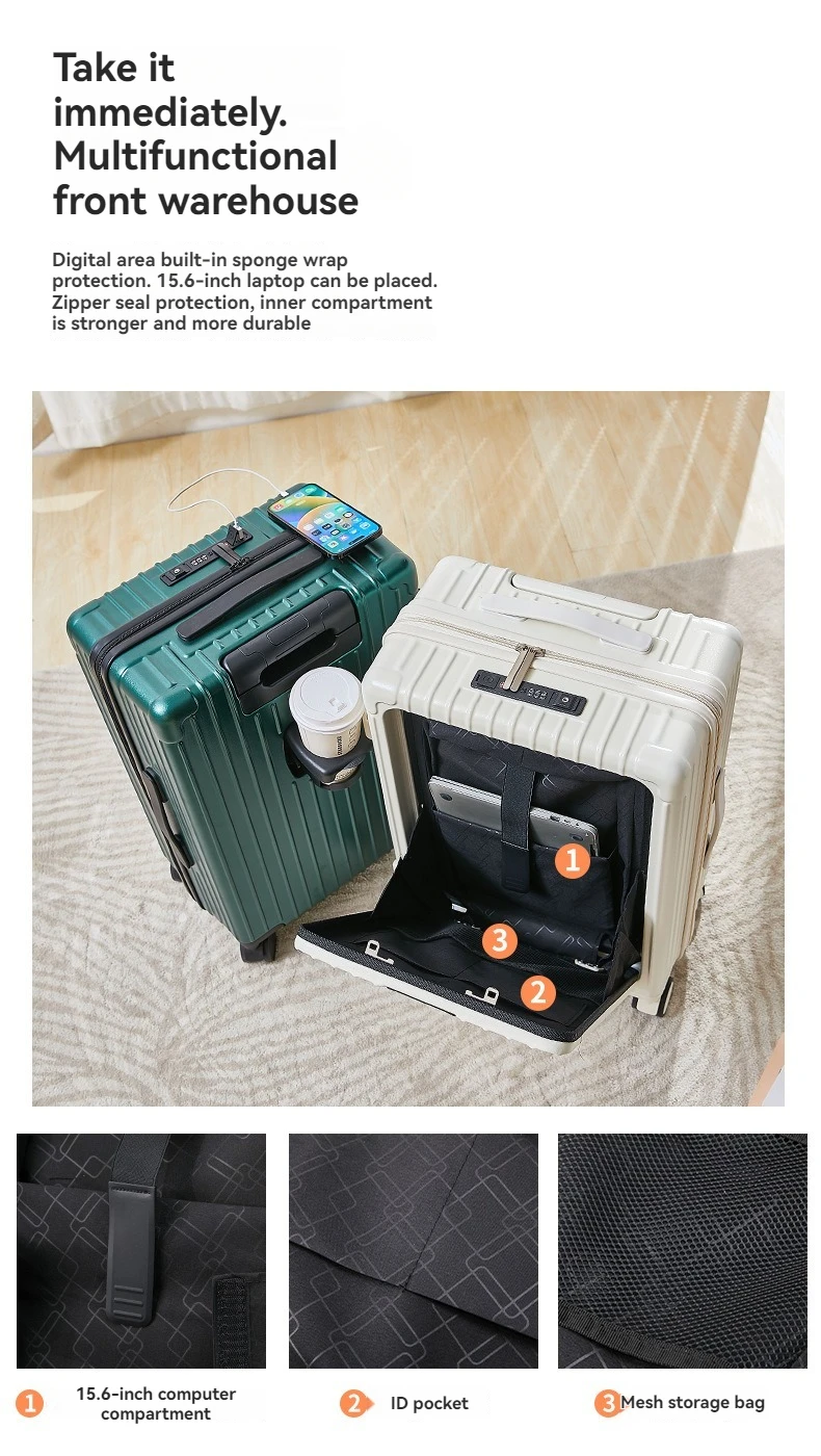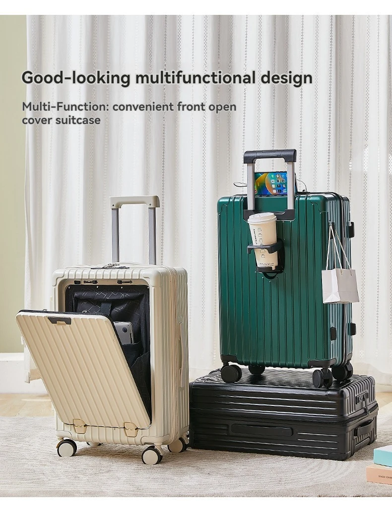 New multifunctional luggage with front opening 20 inch password travel case 26 inch men's and women's large capacity luggage wit