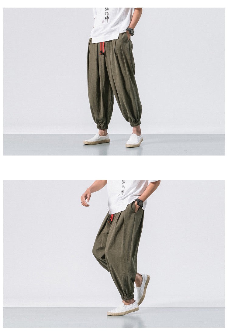 New Oversized Men Harem Pants Loose Chinese Style Cotton and Linen Sweatpants Joggers High Quality Casual Trousers Men