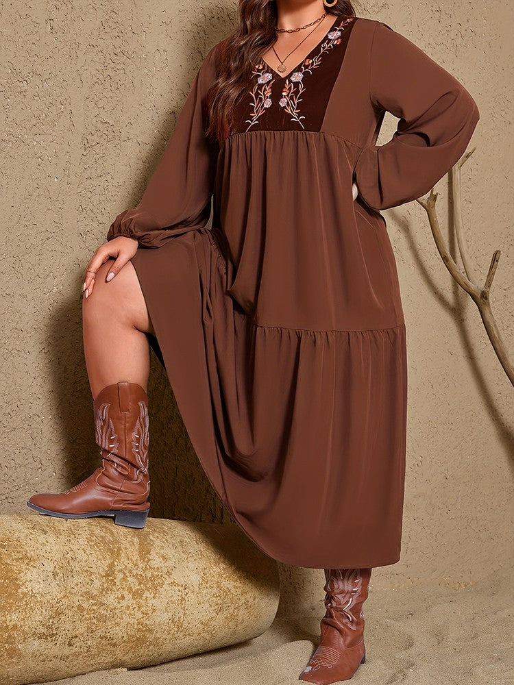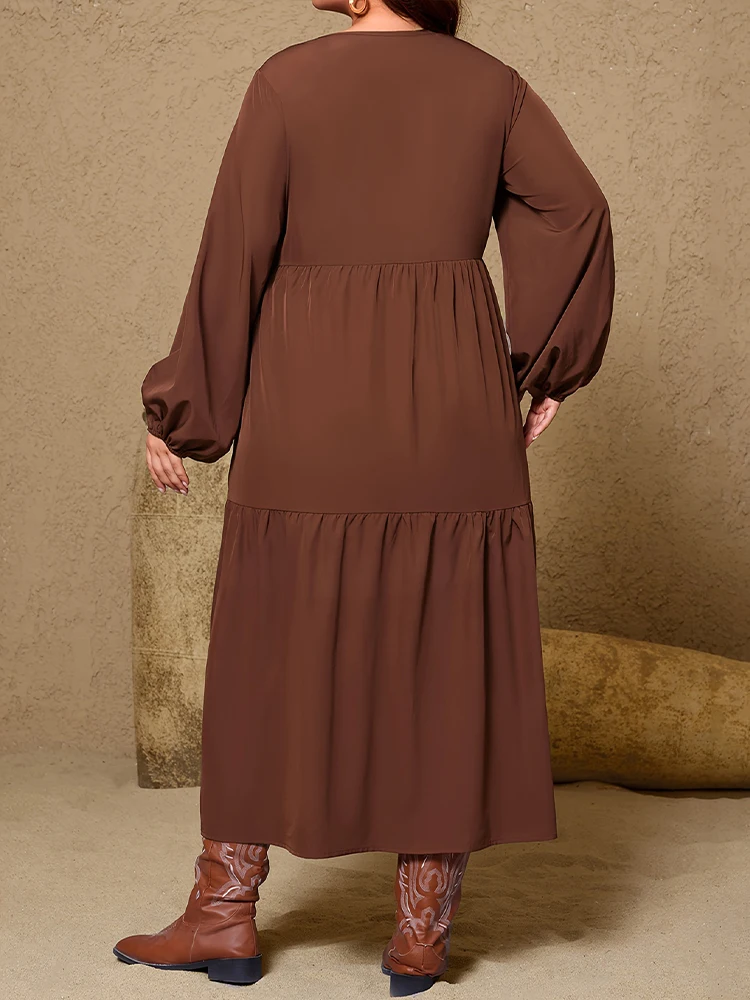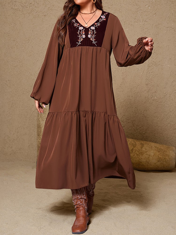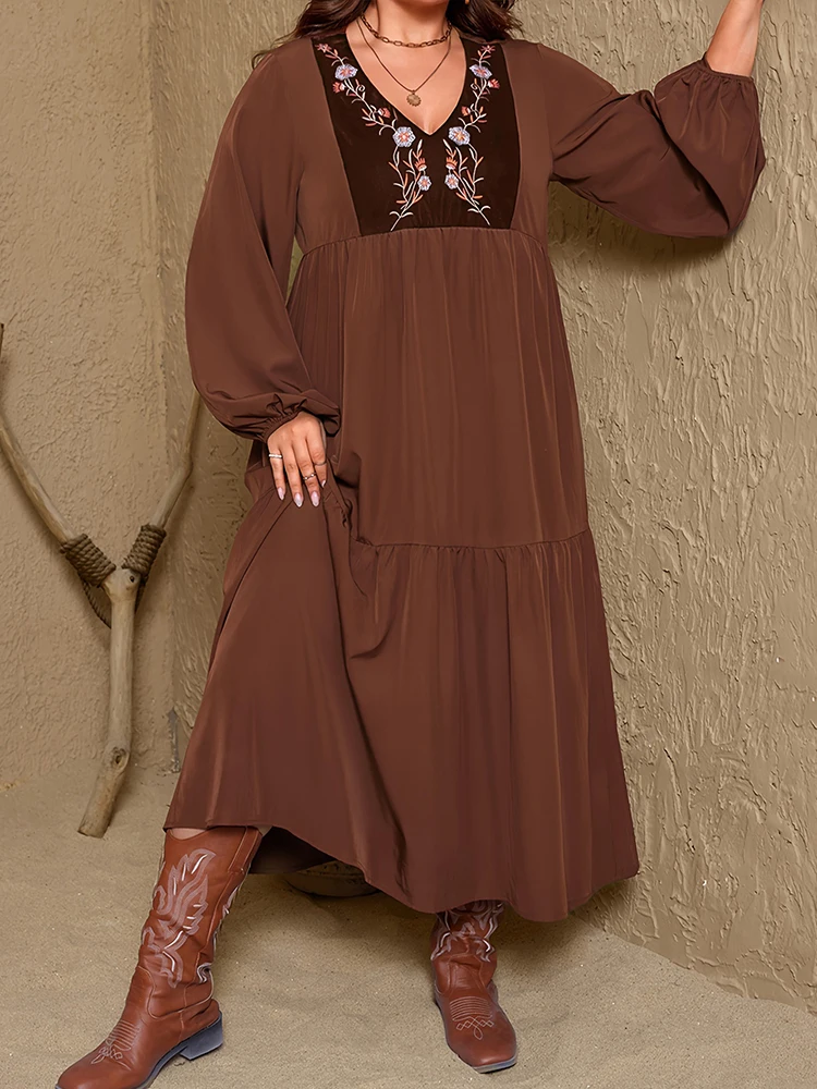New Plus Size Women's Retro Floral Print V-Neck Maxi Dress Lantern Sleeves Ruffle Hem Loose Dress Elegant Holiday Party Dress