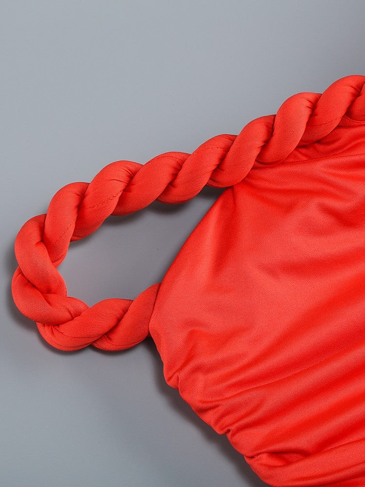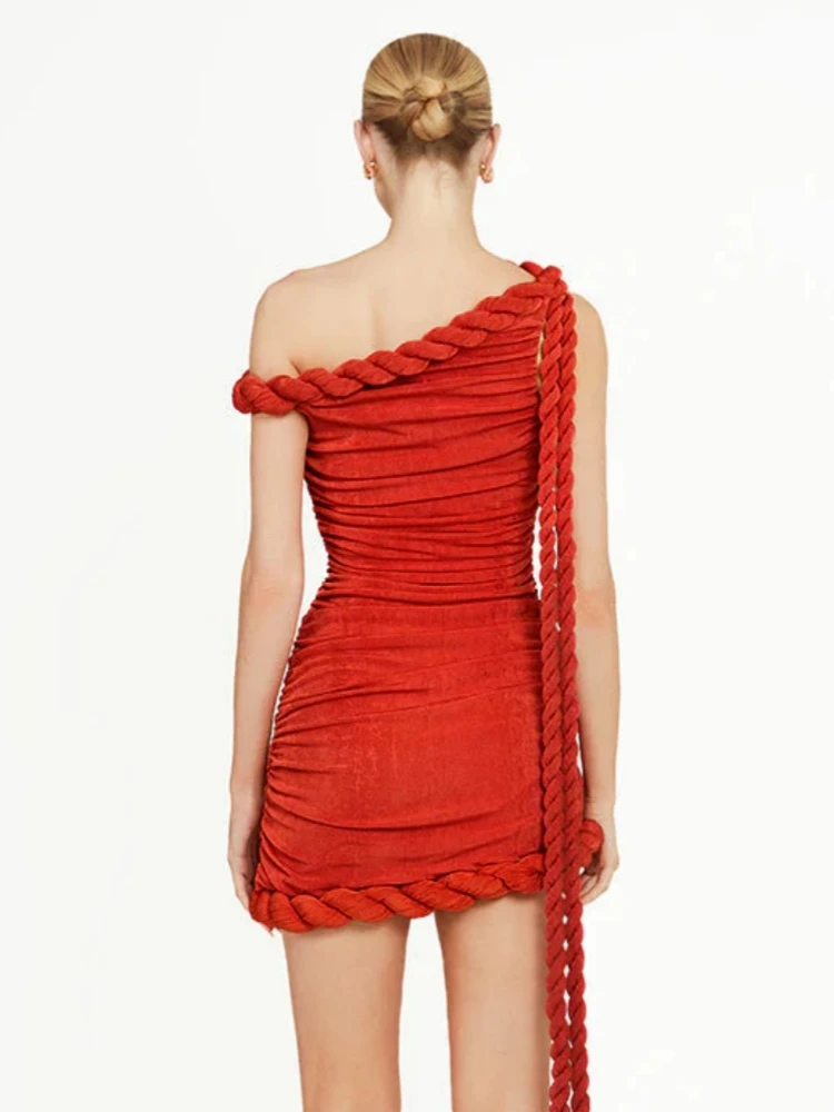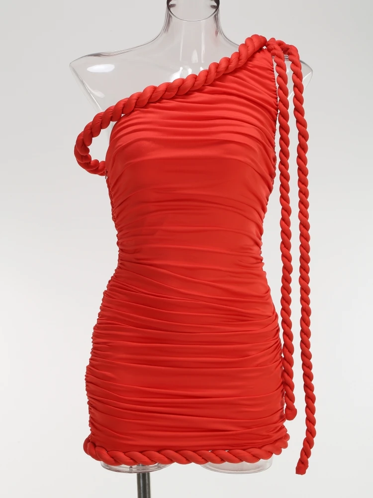 New Sexy One Shoulder Patchwork Twist Knot Draped Mini Dress Women Diagonal Collar Ruched Bodycon Dresses Evening Party Cocktail