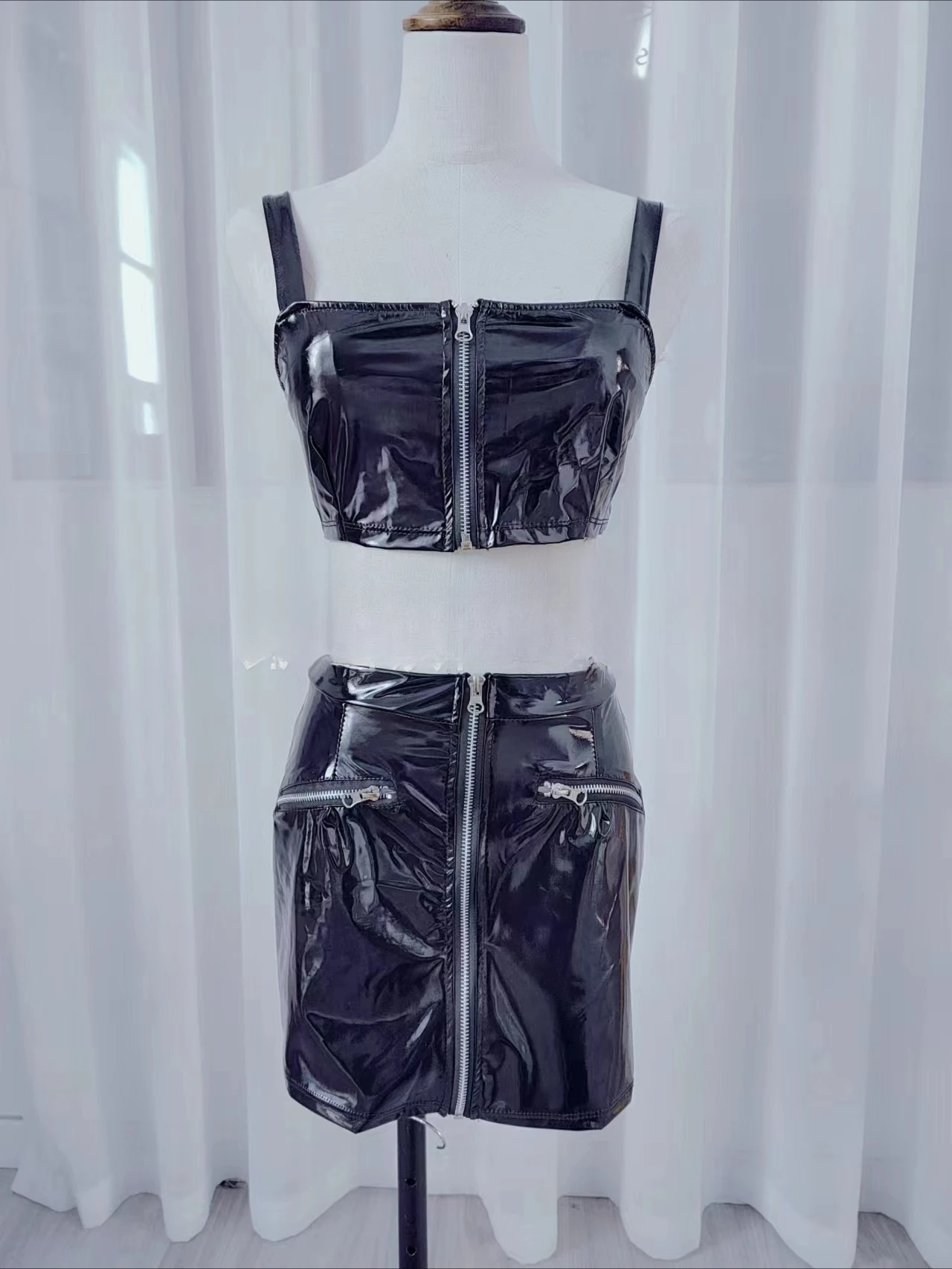 New Sexy Patent Leather Elastic Mini Hip Skirt Nightclub Hot Leather Mini Skirt Evening Dresses Women Black Skirt