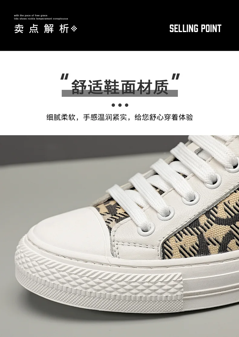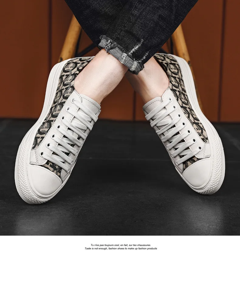 New Shoes for Men Genuine Leather Patchwork Casual Shoes Trend Flat Skateboard Shoes Youth Cool Lace-up Sneakers