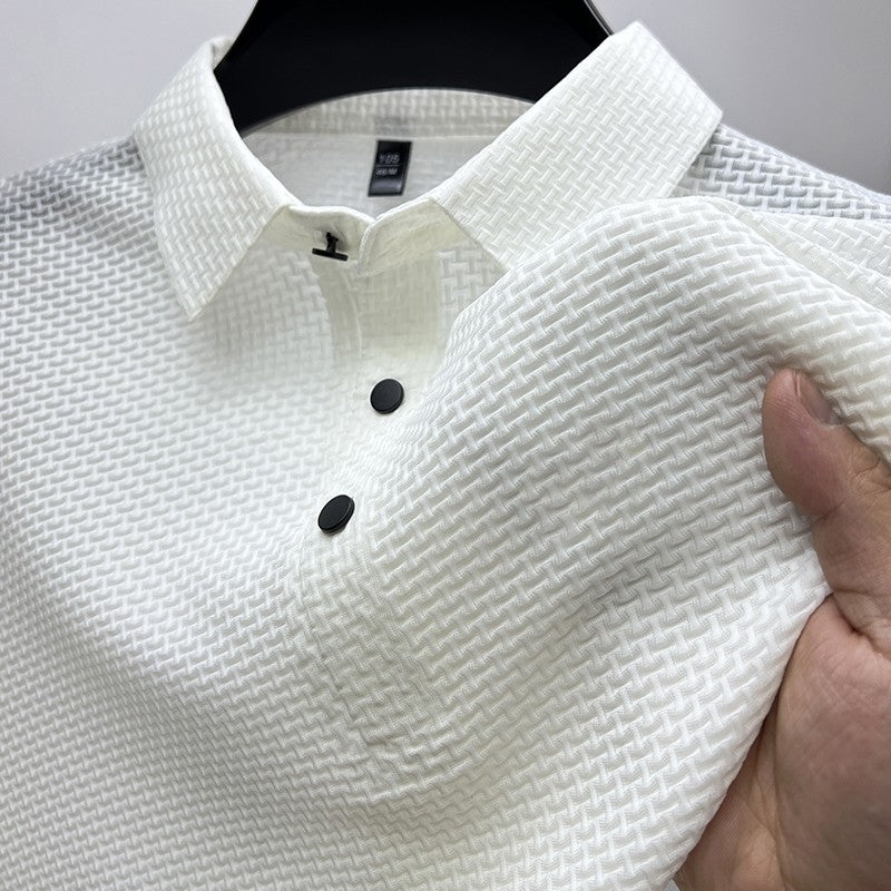 New Silk Knitted Hollow Polo Shirt Korean Edition Men's Summer Fashion Business Leisure Cool and Breathable Short Sleeved Top