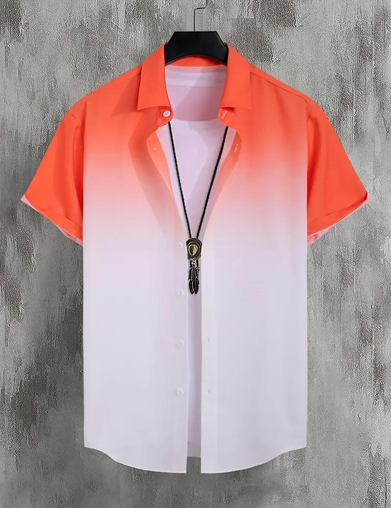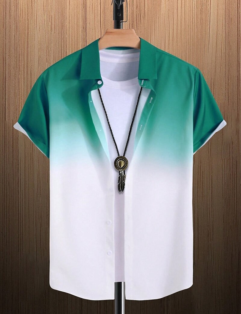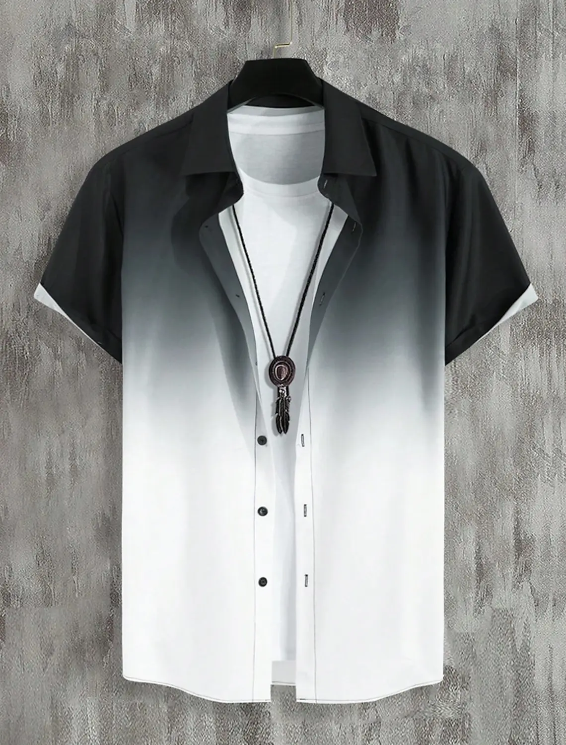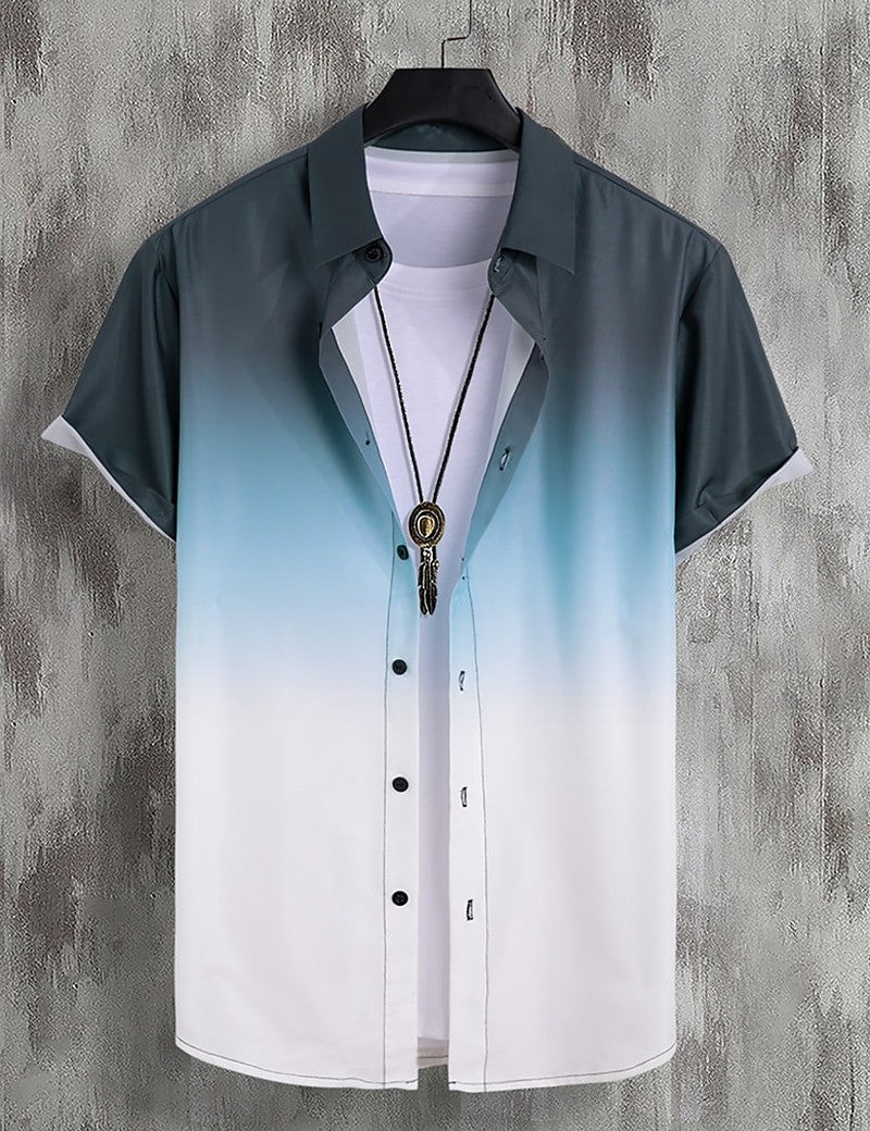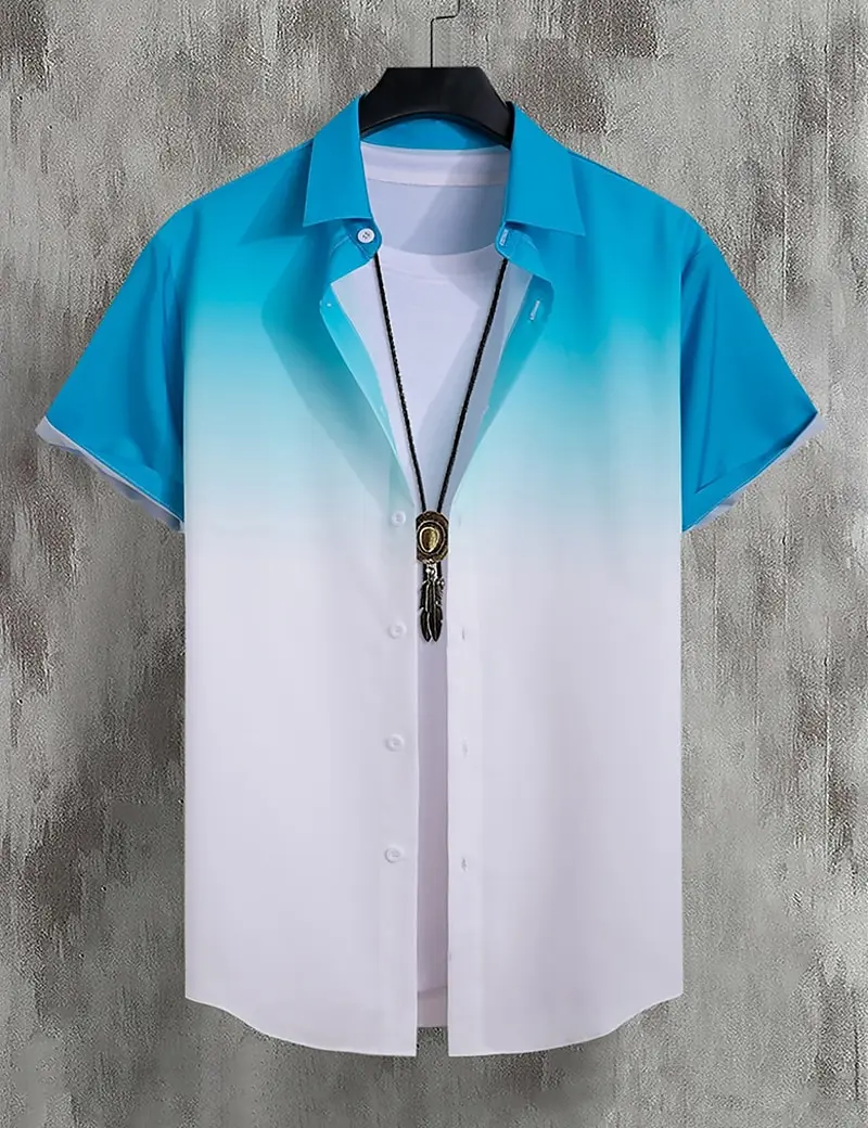 New Simple Gradient Hawaiian short-sleeved Top Casual Beach Buttoned Lapel short-sleeved Shirt Comfortable men's Shirt