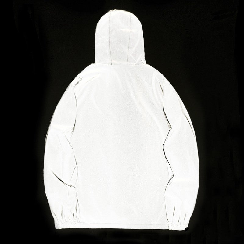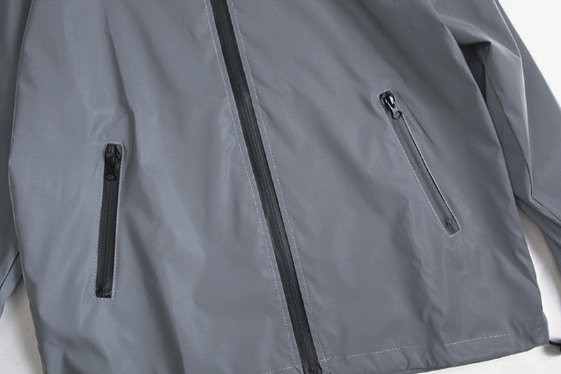 NEW SIZE Night Reflective Jackets Double Fabric Windbreaker Hooded Jacket Men Hip Hop Dancer Waterproof Zipper Coats Outwear