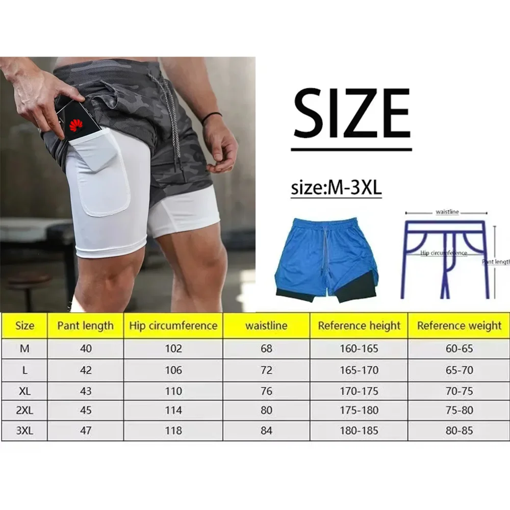 New Sports Shorts 2 in 1 Male Breathable and Informal Sportswear Double Layer Running M-3XL Basketball Shorts Gym Shorts