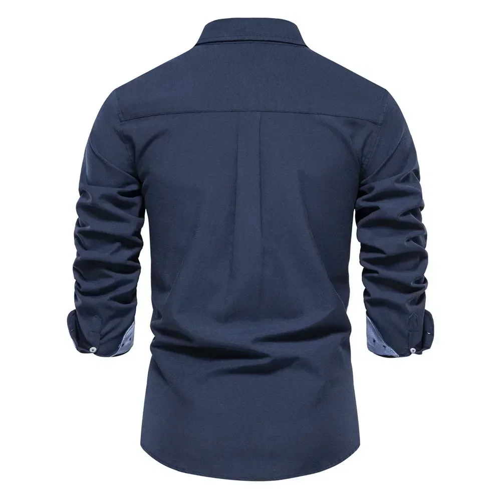 New Spring and Autumn Cotton Social Shirt Men Solid Color High Quality Long Sleeve Shirt for Men Lapel Casual Social Men's Shirt