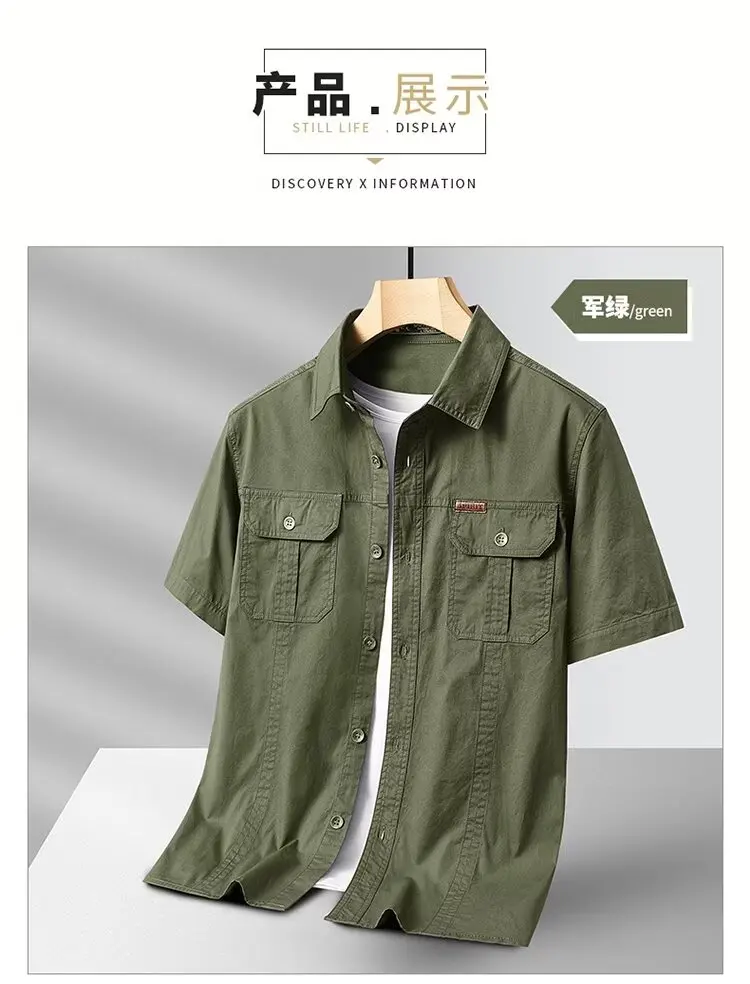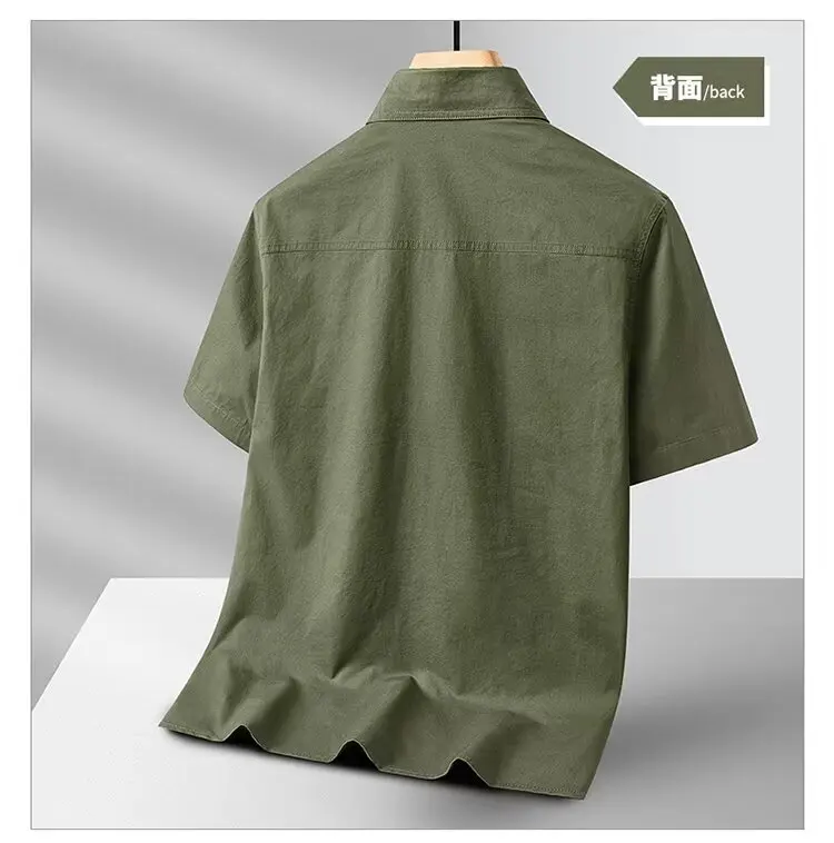 New Summer Men's Short Shirt Korean Casual Oversized Navy Blue Cargo Shirt Classic Retro Men Clothing Outdoor Sports Durable Top