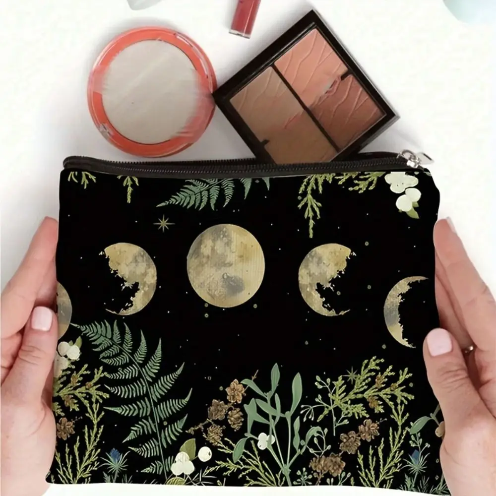 New Trendy Zipper Pouch Nature Moon Phase Simple Modern Cosmetic Bag Durable Boho Tarot Pouch Halloween