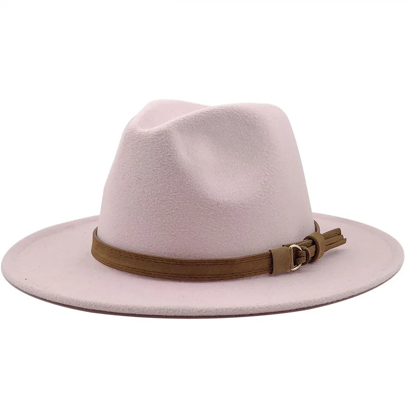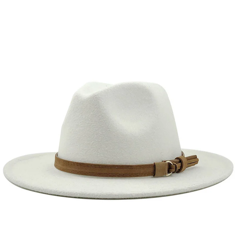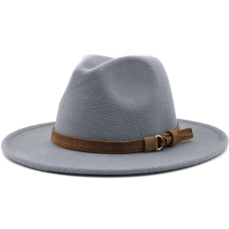New Women Men Wool Fedora Hat With Leather Ribbon Gentleman Elegant Lady Winter Autumn Wide Brim Jazz Church Panama Sombrero Cap