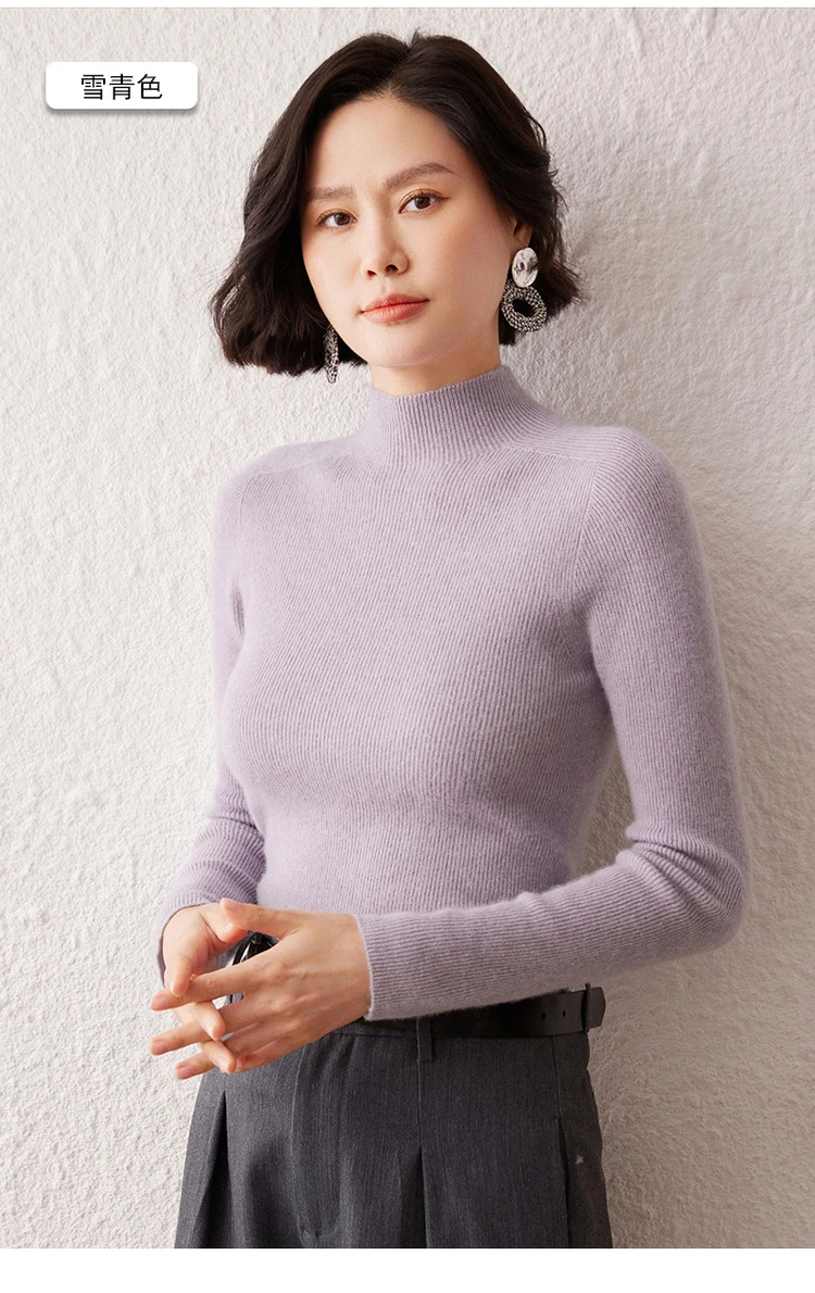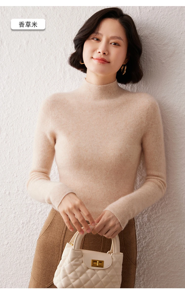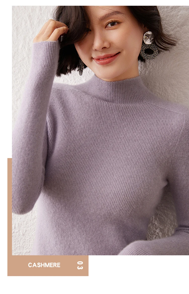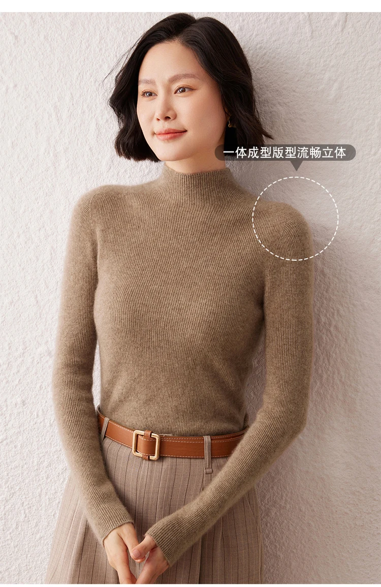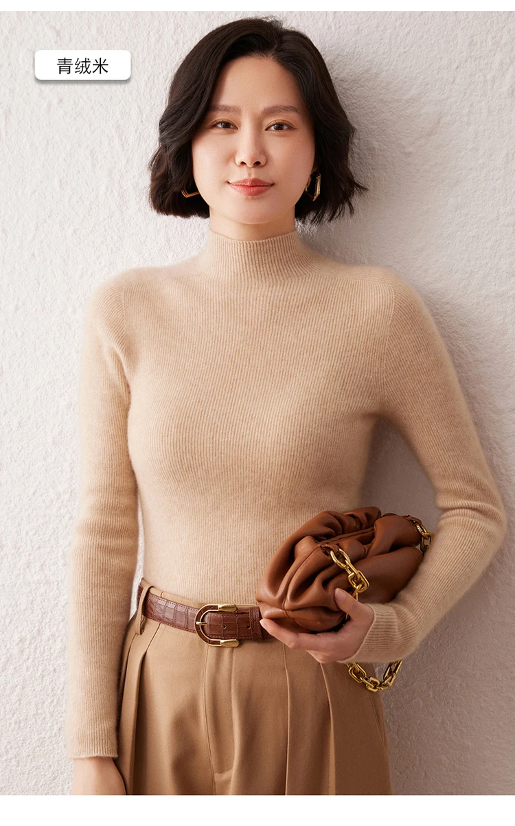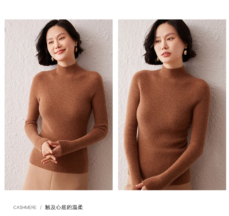 New women's sweater 100% pure cashmere high neck knitted pullover Korean version slim fit hot selling fashionable sweater