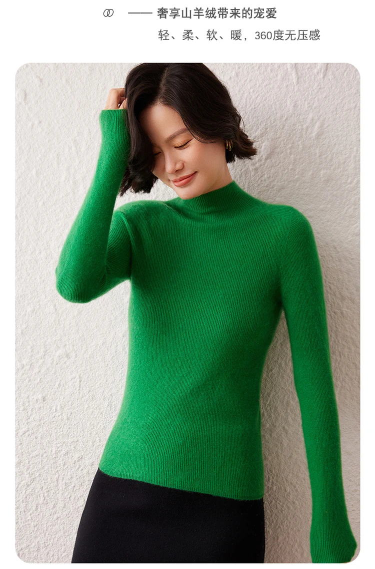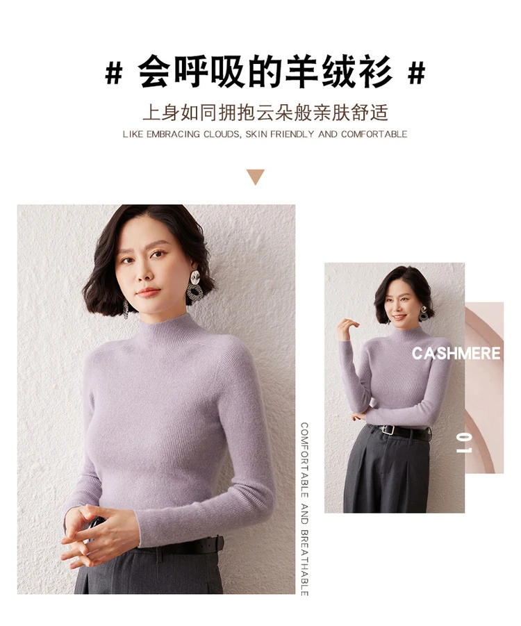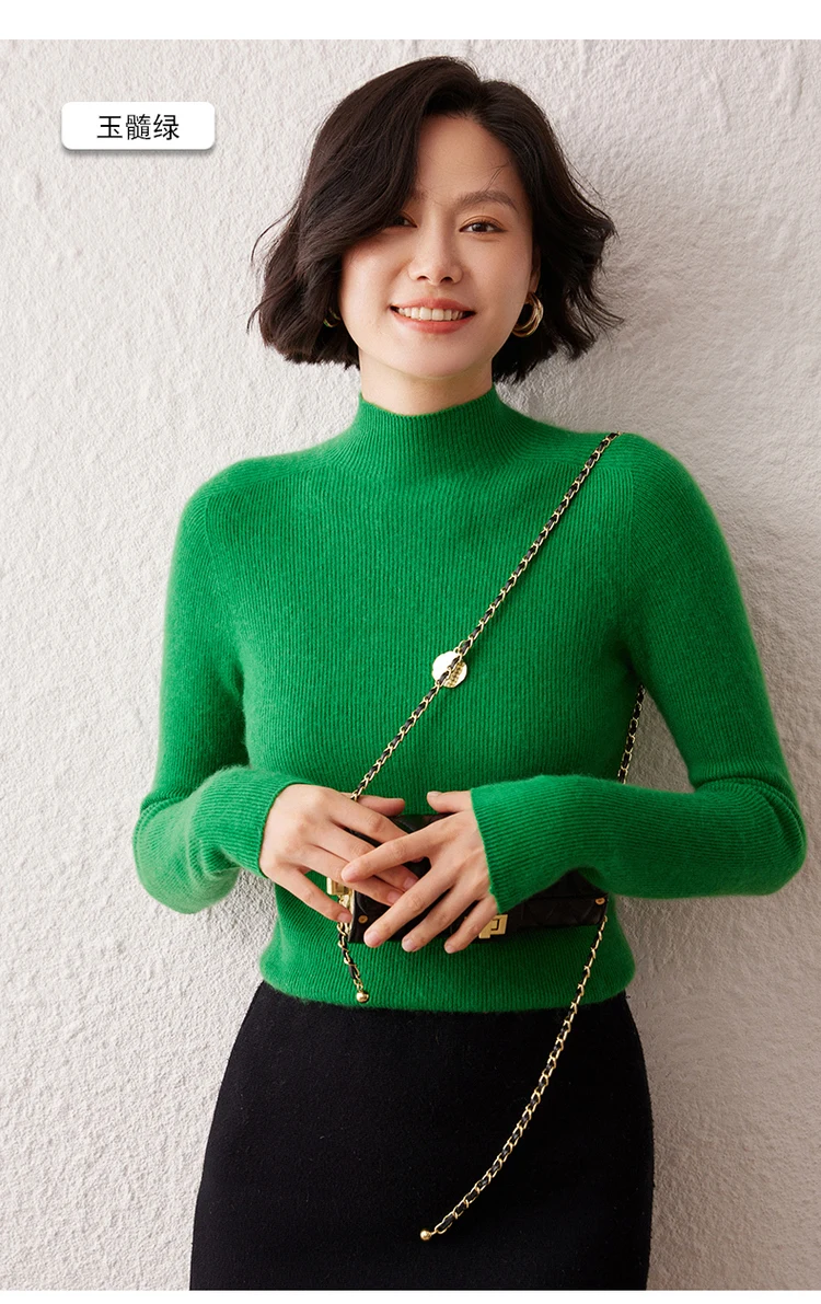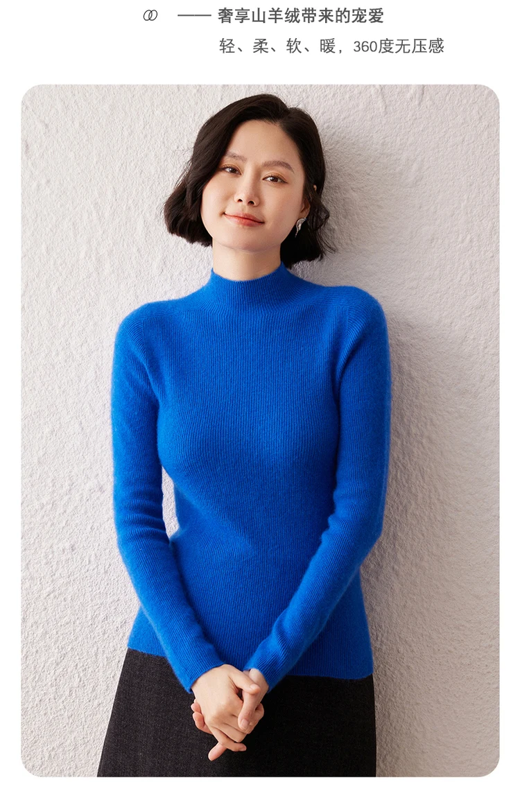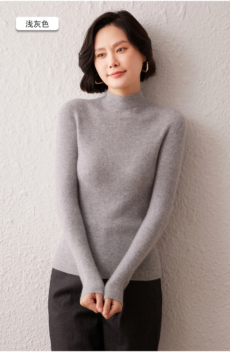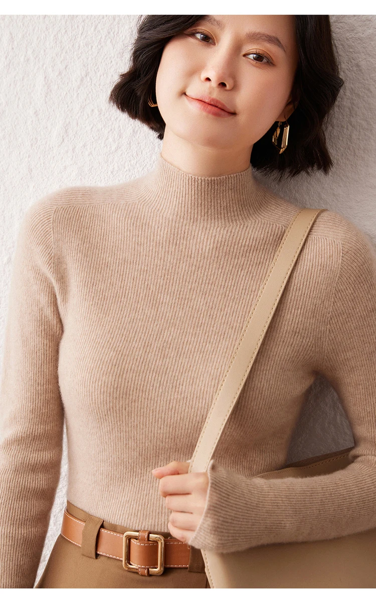 New women's sweater 100% pure cashmere high neck knitted pullover Korean version slim fit hot selling fashionable sweater