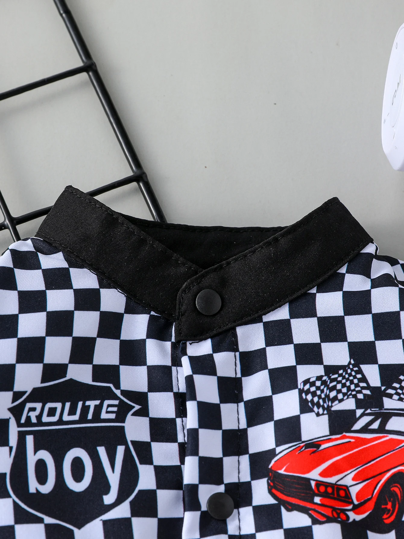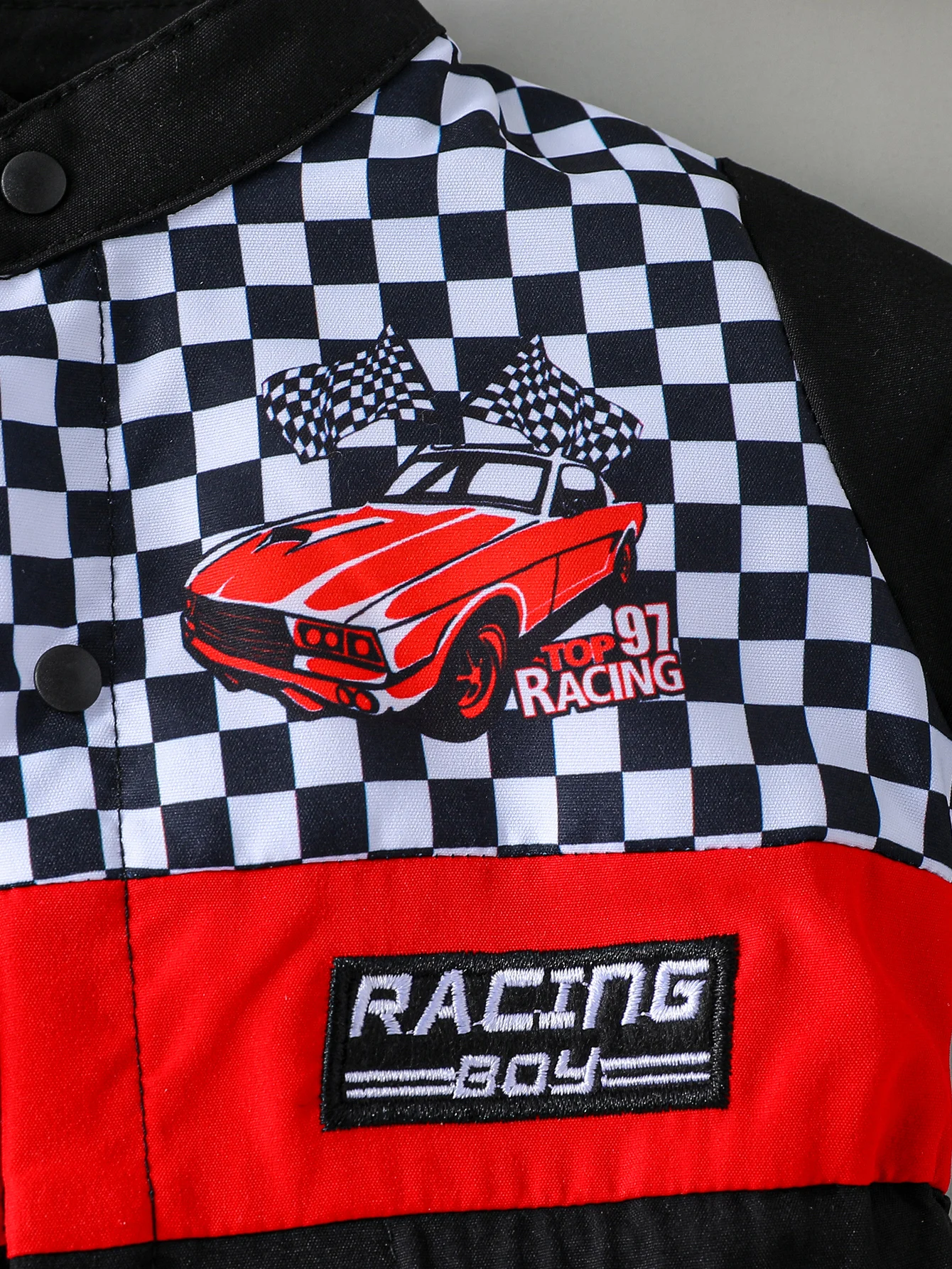 Newborn Baby Boy Styling Suit Mini Racer Outfit with Embroidered Stand Collar and Zipper Denim Overalls