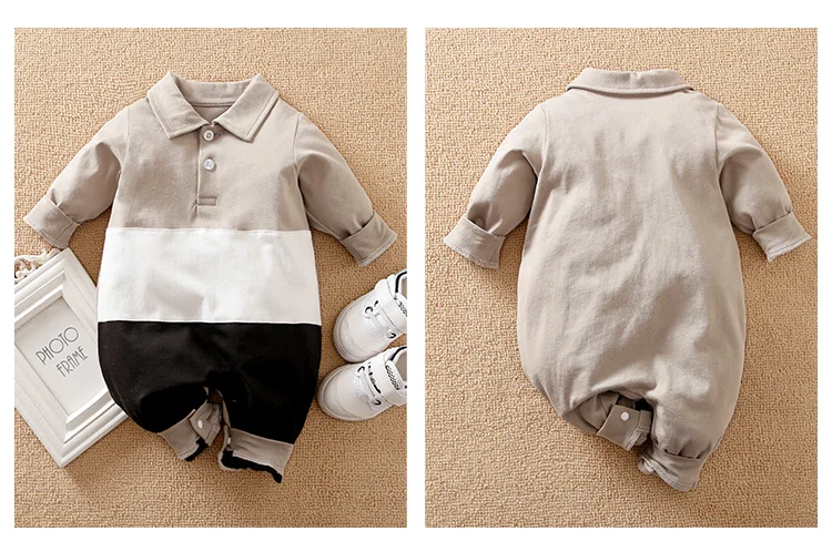 Newborn Clothing Casual Color Blocking Polo Shirt Cotton Comfortable And Soft Spring And Autumn Long Sleeved 0-18 Baby Jumpsuit