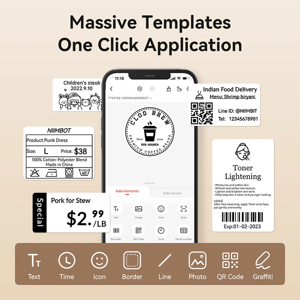 The NIIMBOT app included more than support 30+ fonts/Languages, 100+ borders, and 1500+ symbols, barcodes, QR codes, icons, time stamps, pictures, photos, OCR print etc... Just need to download the niimbot app, choosing and connecting printer model B1 from NIIMBOT APP, then Enjoy Printing.