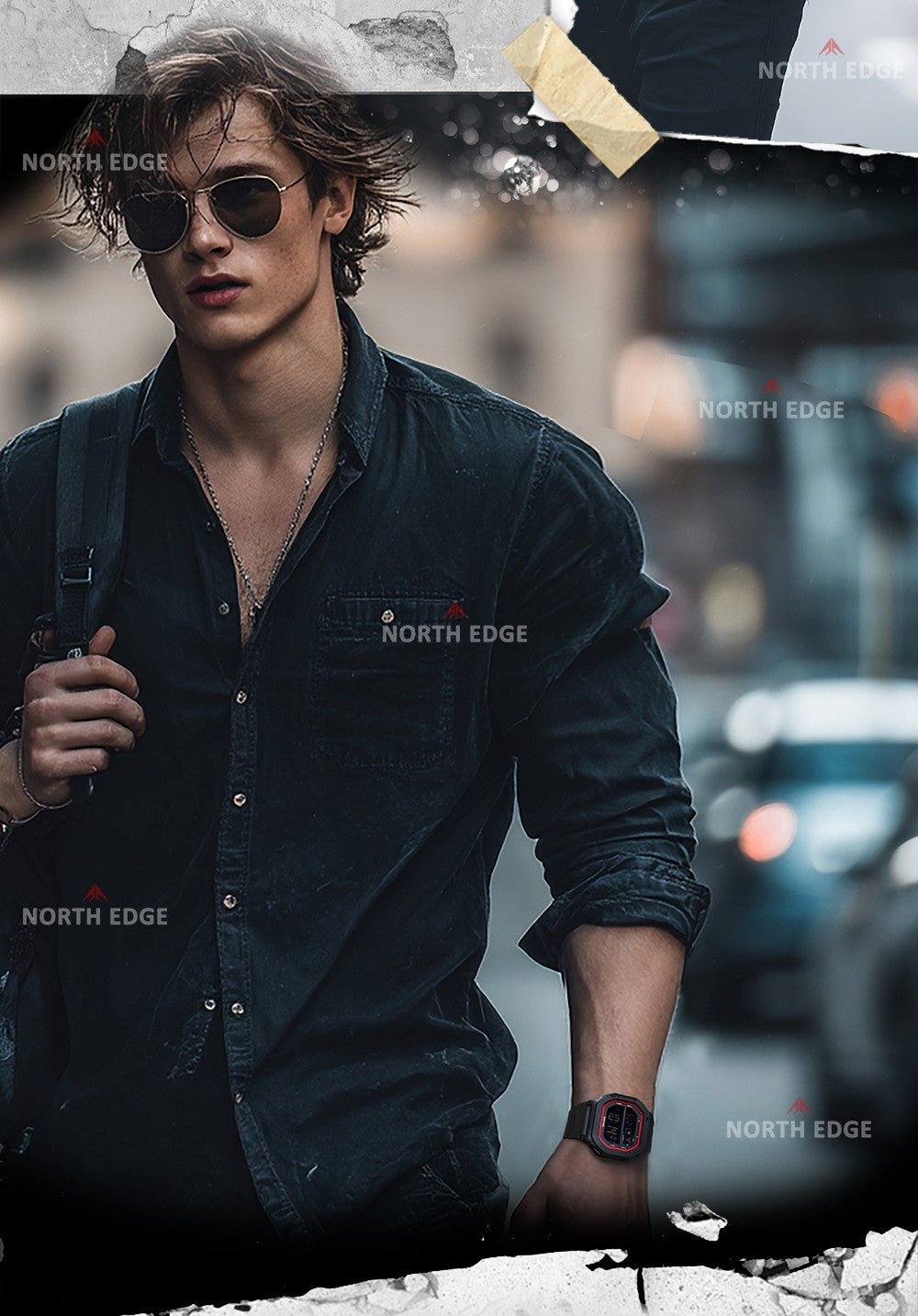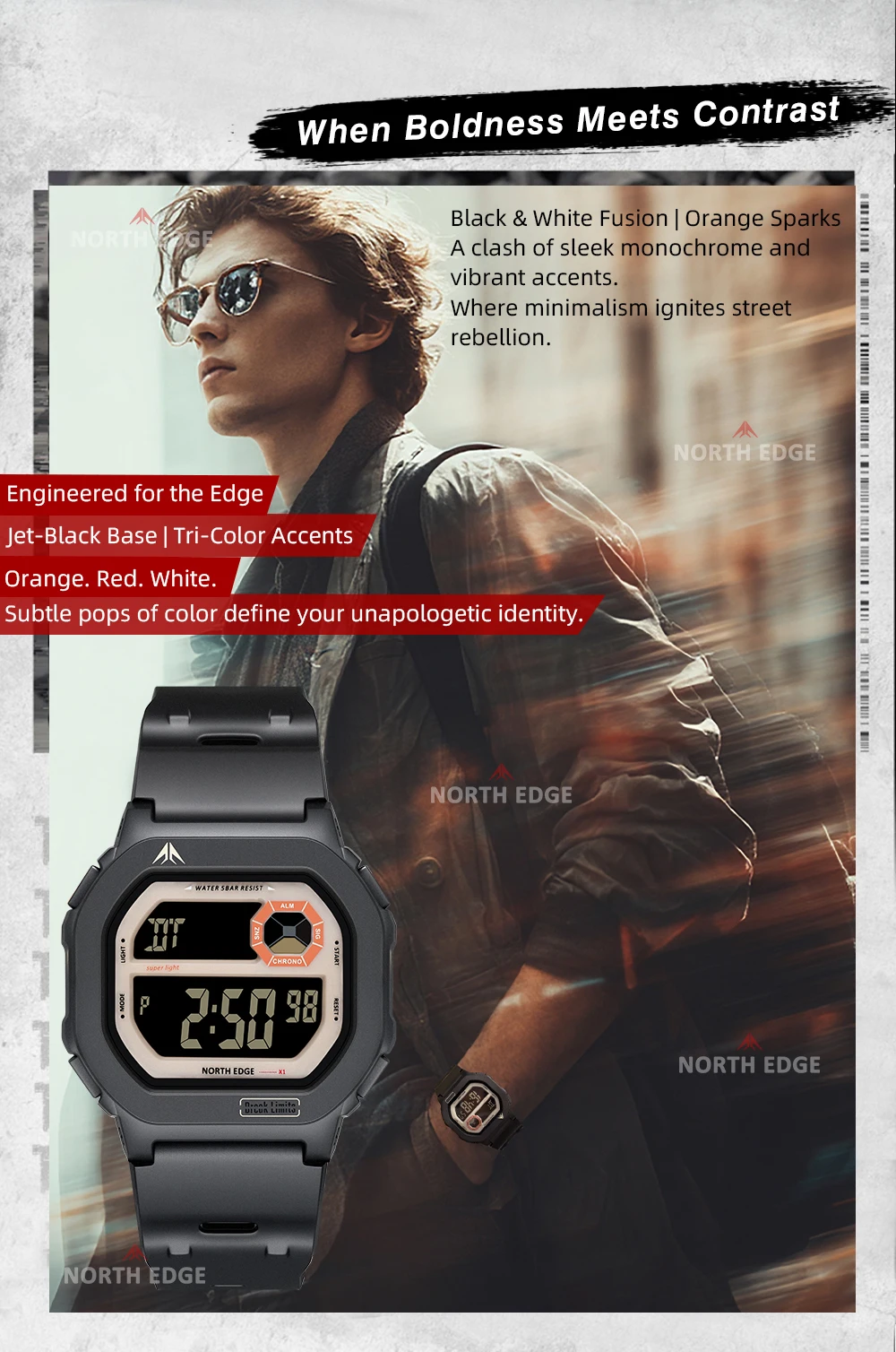 NORTH EDGE X1 Square Screen Digital Watch 2025 Men Women Sportswatch Waterproof 50M Stopwatch Countdown Alarm Clock Reloj Hombre
