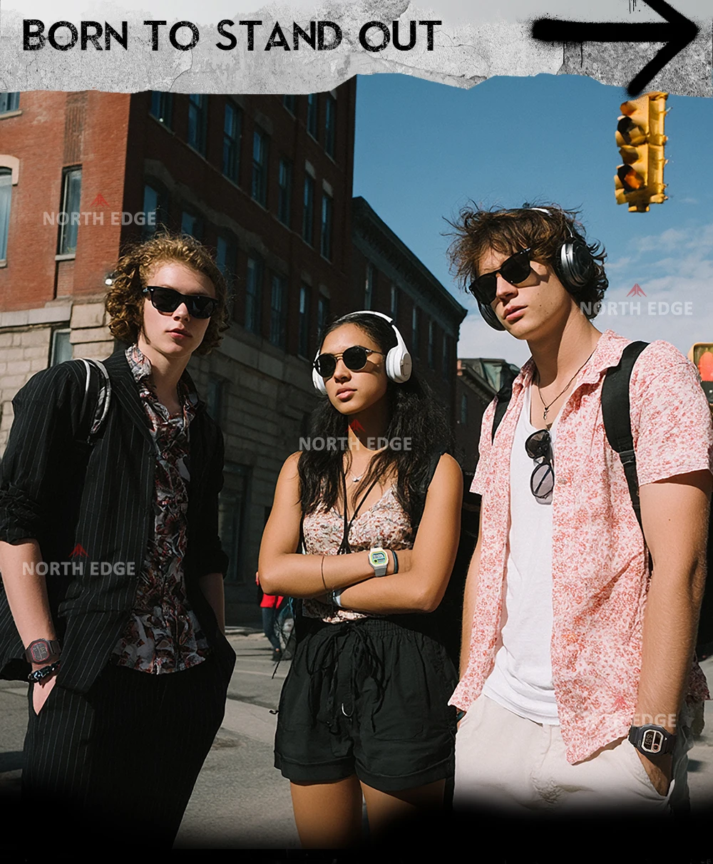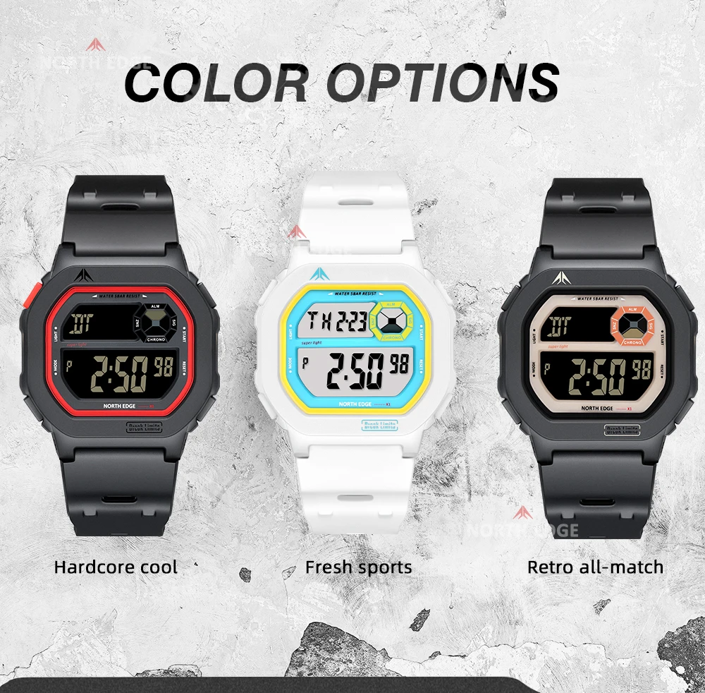 NORTH EDGE X1 Square Screen Digital Watch 2025 Men Women Sportswatch Waterproof 50M Stopwatch Countdown Alarm Clock Reloj Hombre