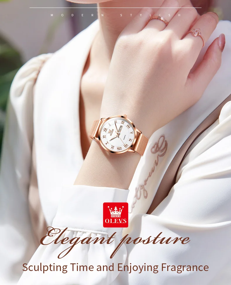 OLEVS 2920 Women's Watch Top Quality Stainless Steel Waterproof Double Calendar Quartz Watch Classic Fashion Luxury Women Watch